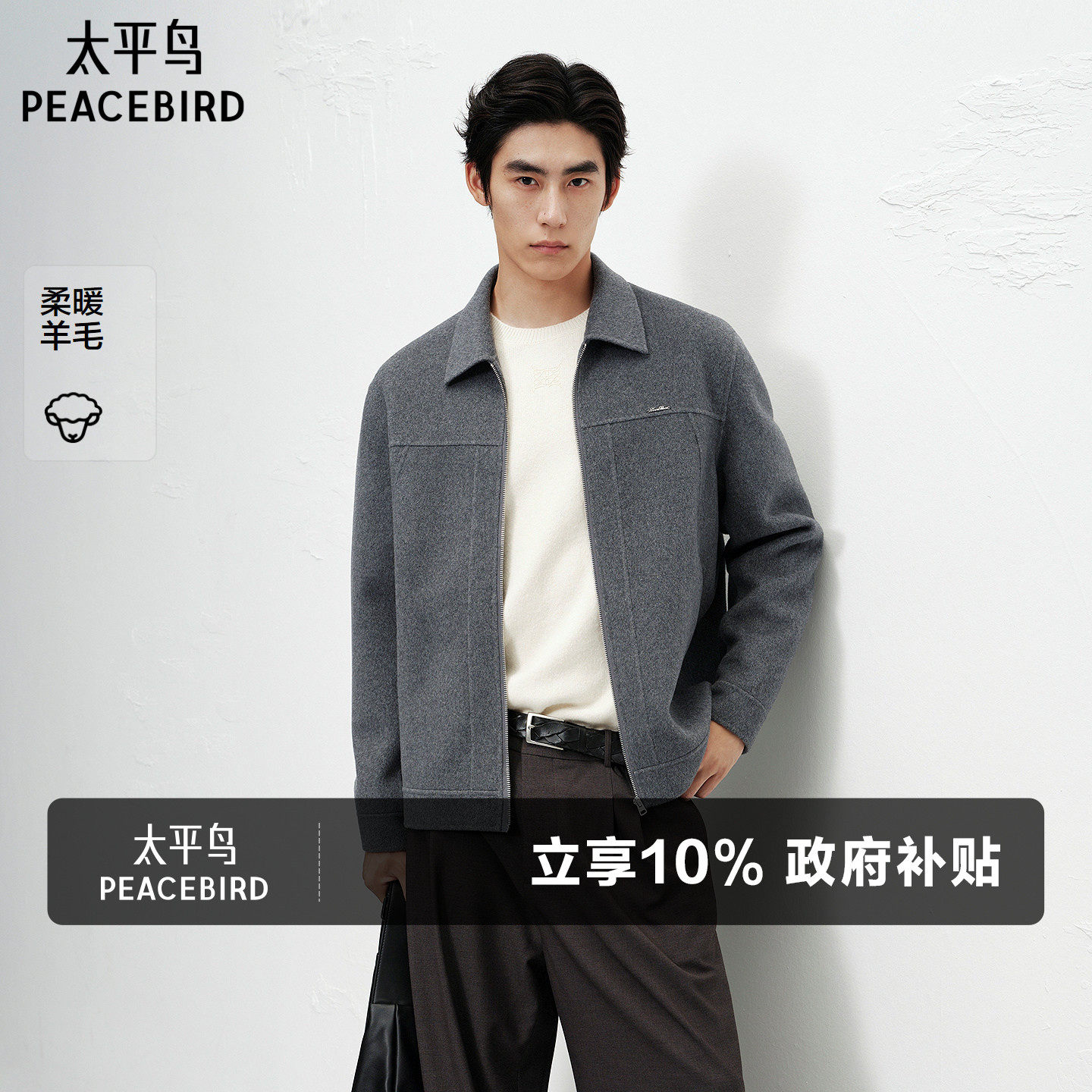 【保暖羊毛】太平鸟男装翻领毛呢夹克保暖纯色通勤老钱风休闲外套