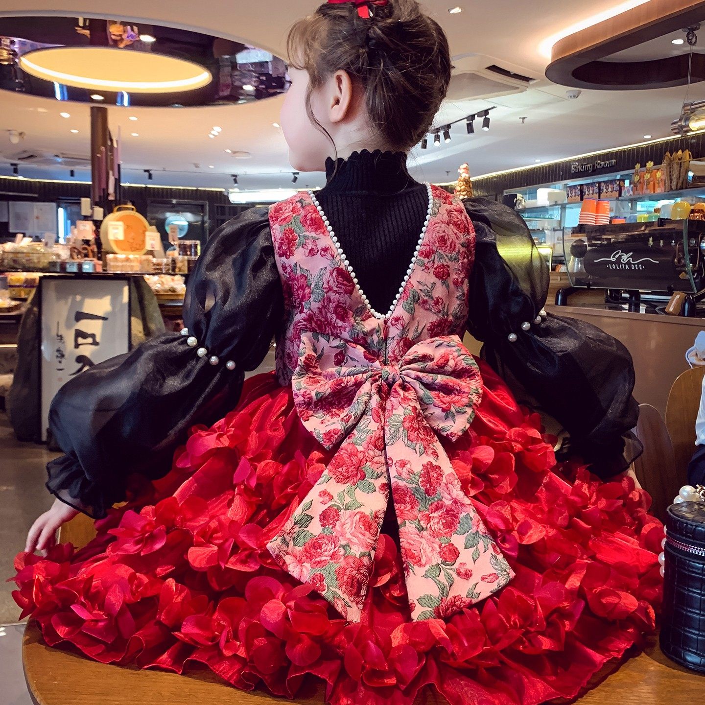 女童春秋连衣裙宝宝礼服长袖花朵碎花公主裙女孩韩版儿童纯棉裙子
