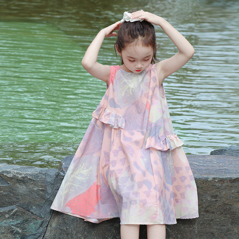 女童无袖连衣裙 宝宝夏款韩版公主裙背心裙子 儿童洋气碎花80-150