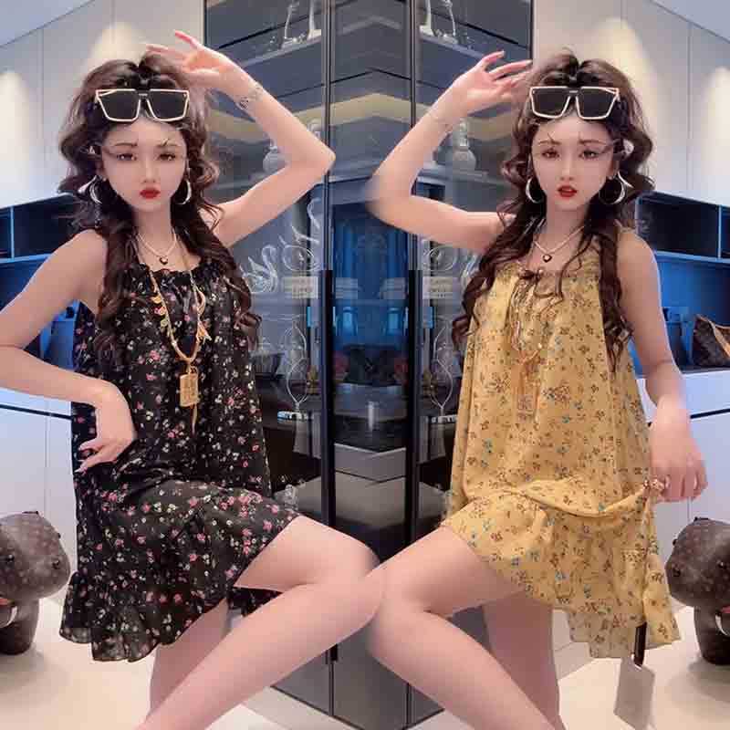 ifbeer复古ins风韩版碎花吊带连衣裙罩衫叠穿内搭外穿女秋冬宽松
