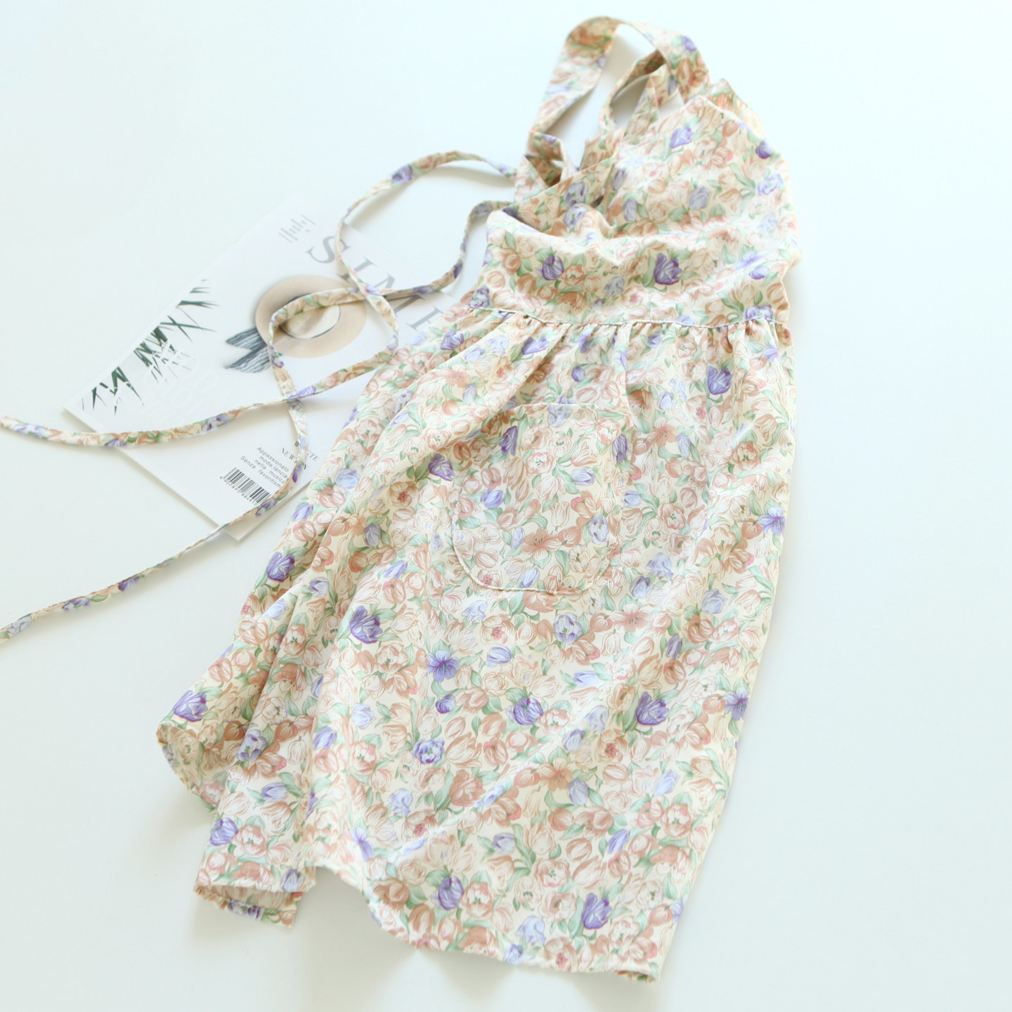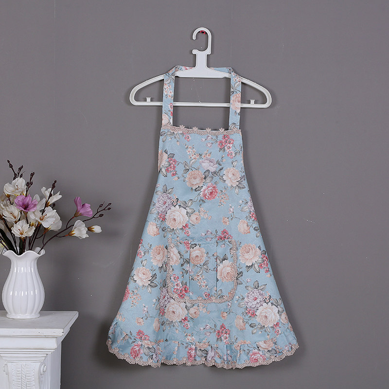 5905韩版小清新碎花公主围裙女双层透气厨房防污烘焙家务背带围兜