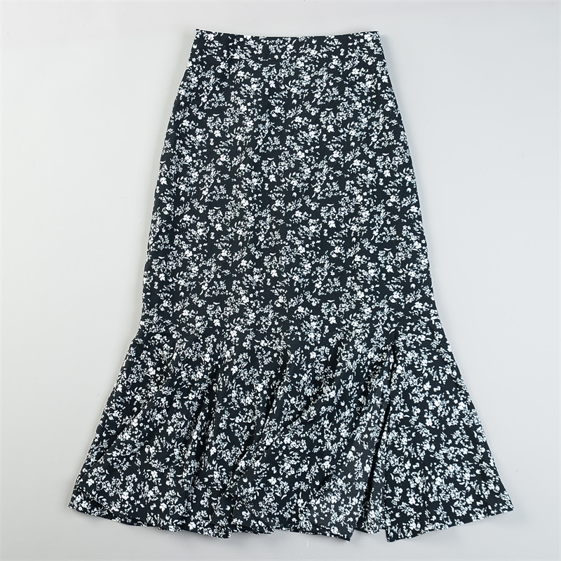 韩版精品碎花雪纺半身裙L85354高腰包臀一步长裙春夏开叉鱼尾裙子