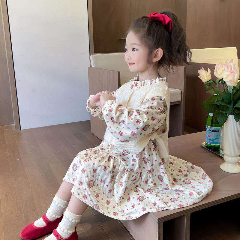 女童毛衣马甲套装女宝宝2025款春款甜美韩版碎花裙儿童针织两件套