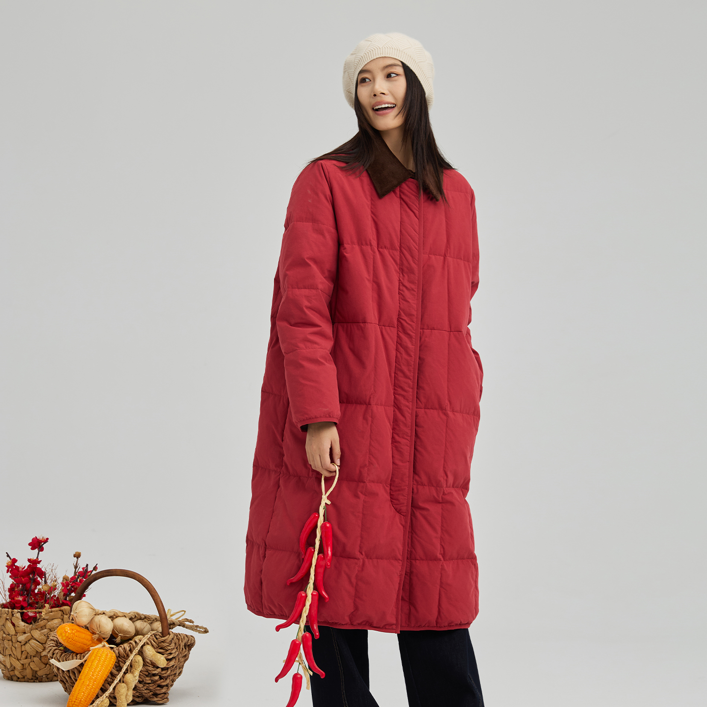- 大红色 羽绒服