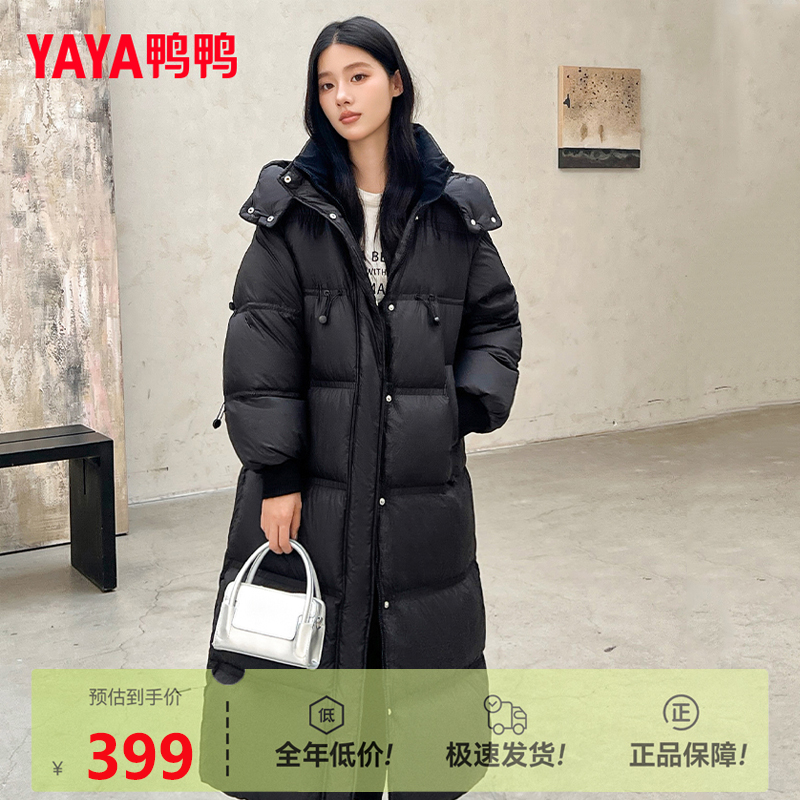 双11鸭鸭长款羽绒服女款新款白色时尚洋气过膝超长加厚外套潮FL