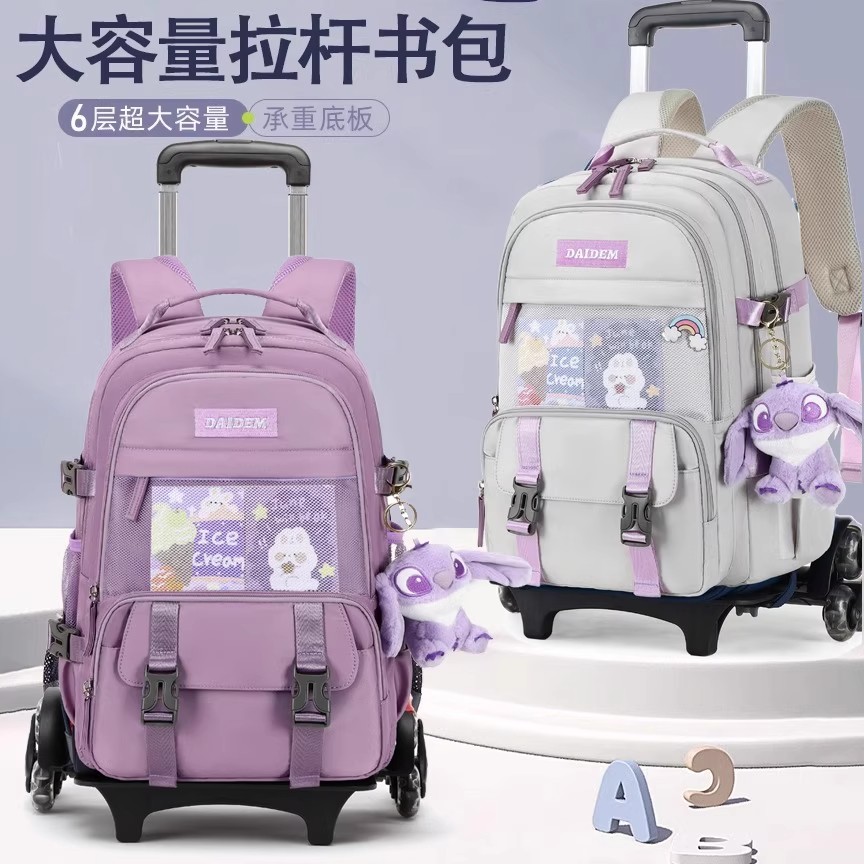 拉杆书包女生初中生小学生三到六年级2025新款大容量拖拉爬楼防水