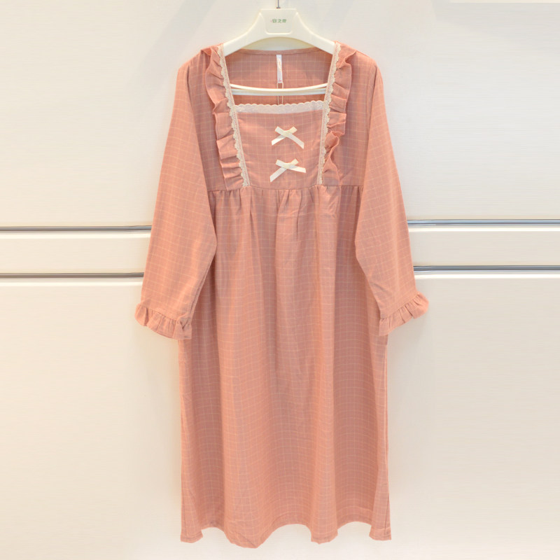 帕兰朵睡裙女春秋纯棉长袖甜美宽松中长连衣裙可外穿大码孕妇睡衣