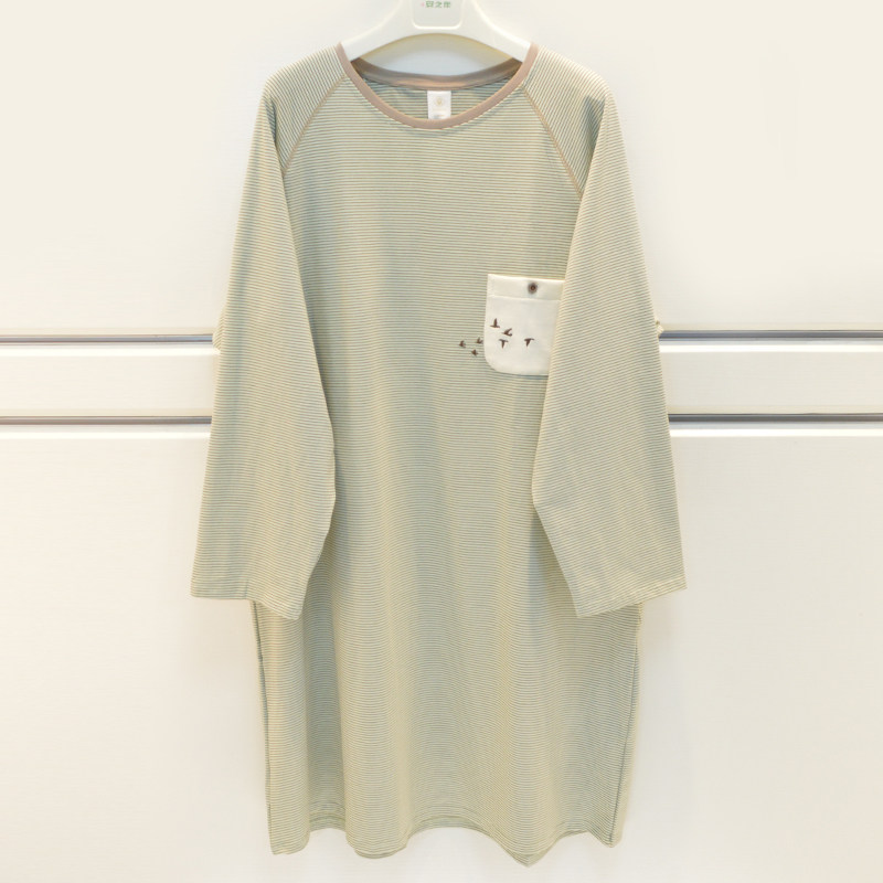 贝妍睡衣女春秋新款柔软棉长袖简约条纹睡裙可外穿少女大码连衣裙