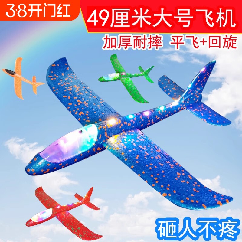 大号手抛飞机玩具发光户外滑行飞机儿童回旋投掷滑翔泡沫飞机模型
