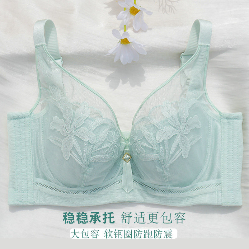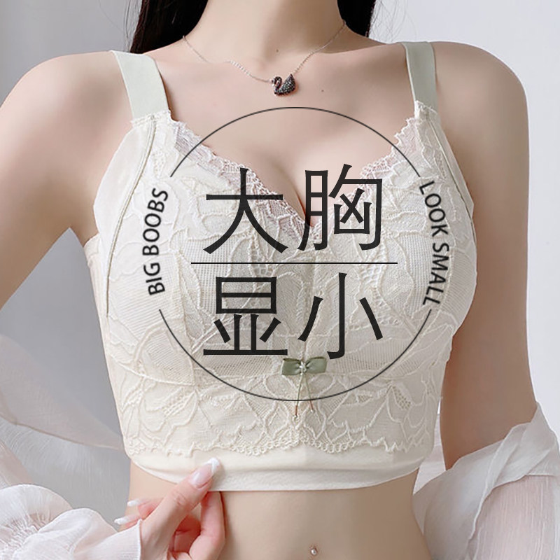 大码大胸显小文胸无钢圈防下垂胸罩内衣女薄款聚拢夏调整型收副乳