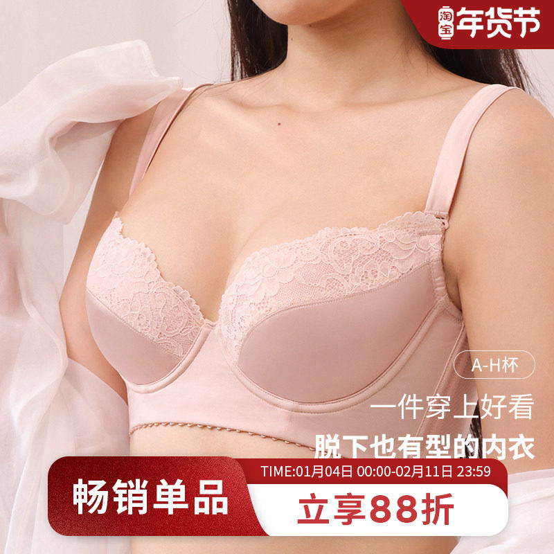 雅黛丽内衣女调整型文胸大胸显小收副乳防下垂全罩杯大码蕾丝胸罩