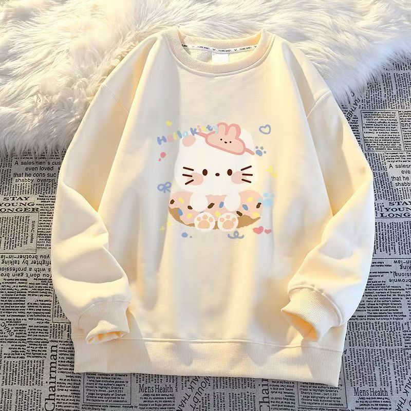 女童春秋小众圆领无帽卫衣2025秋冬新款韩版中大儿童休闲加绒上衣