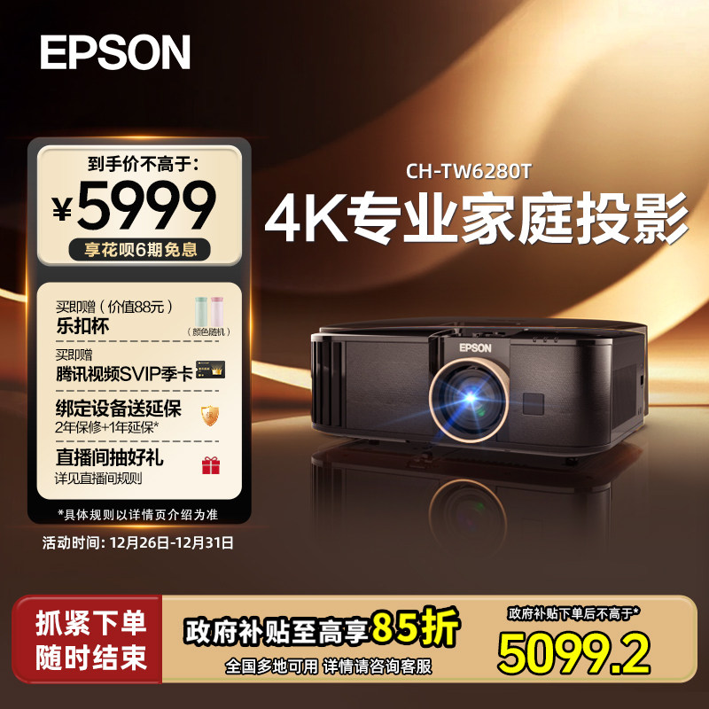 【政府补贴 立减15%】爱普生(Epson) CH-TW6280T专业4K家庭智能投影仪大范围镜头位移 cn