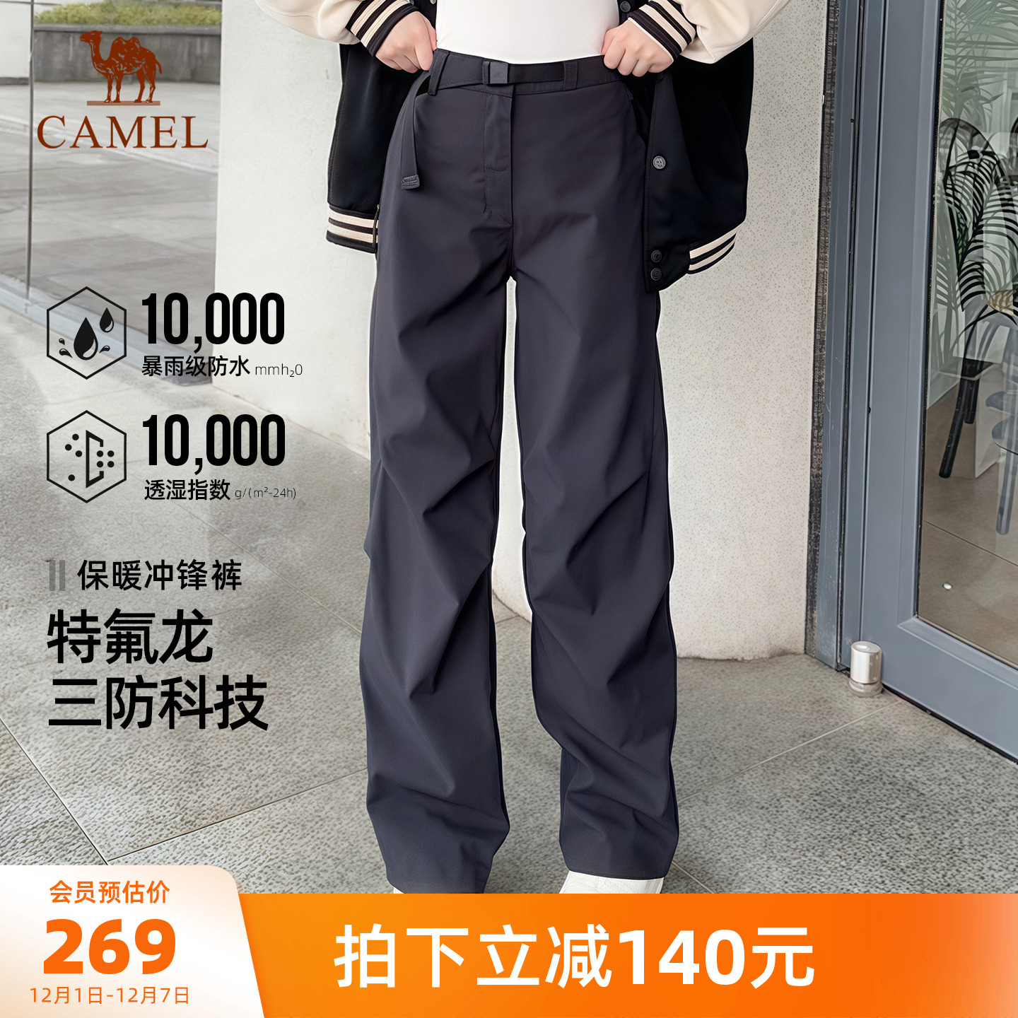 [迪丽热巴同款]骆驼户外冲锋裤女防水防风裤秋冬加绒保暖登山裤男