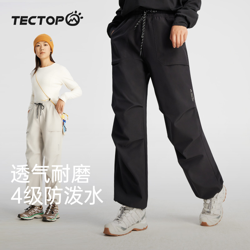 蕉下直筒裤女秋新款卡其色梭织工装加绒休闲裤户外防泼水登山裤子
