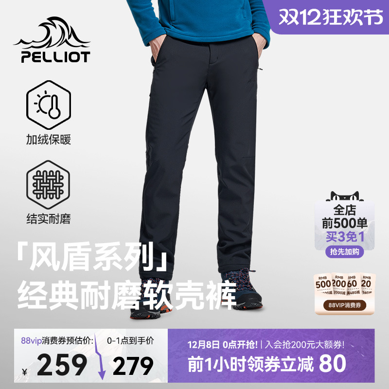 【山壳】伯希和硬壳冲锋裤男户外加厚保暖登山裤防风抗寒滑雪裤女