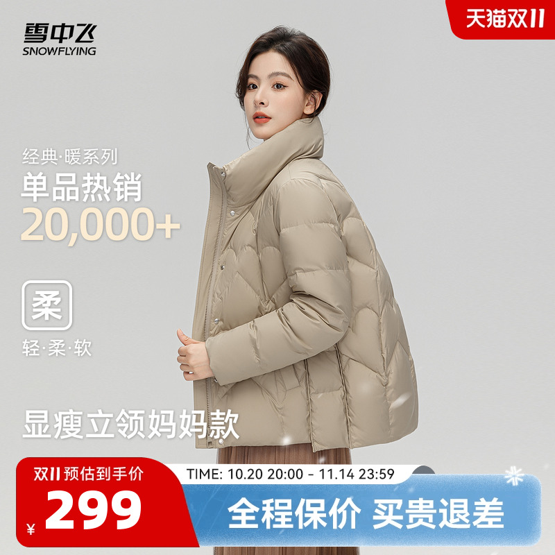 雪中飞2025冬新款短款立领休闲韩版小个子显瘦女式妈妈外套羽绒服