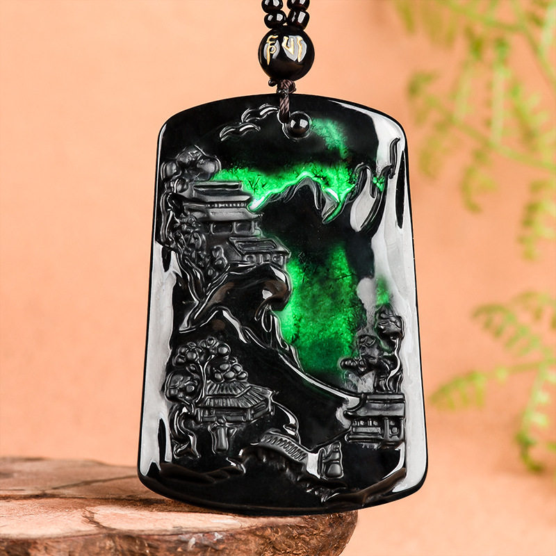 唐今玉天然a货翡翠玉墨翠生肖守护神墨玉吊坠冰种玉石挂件吊坠配