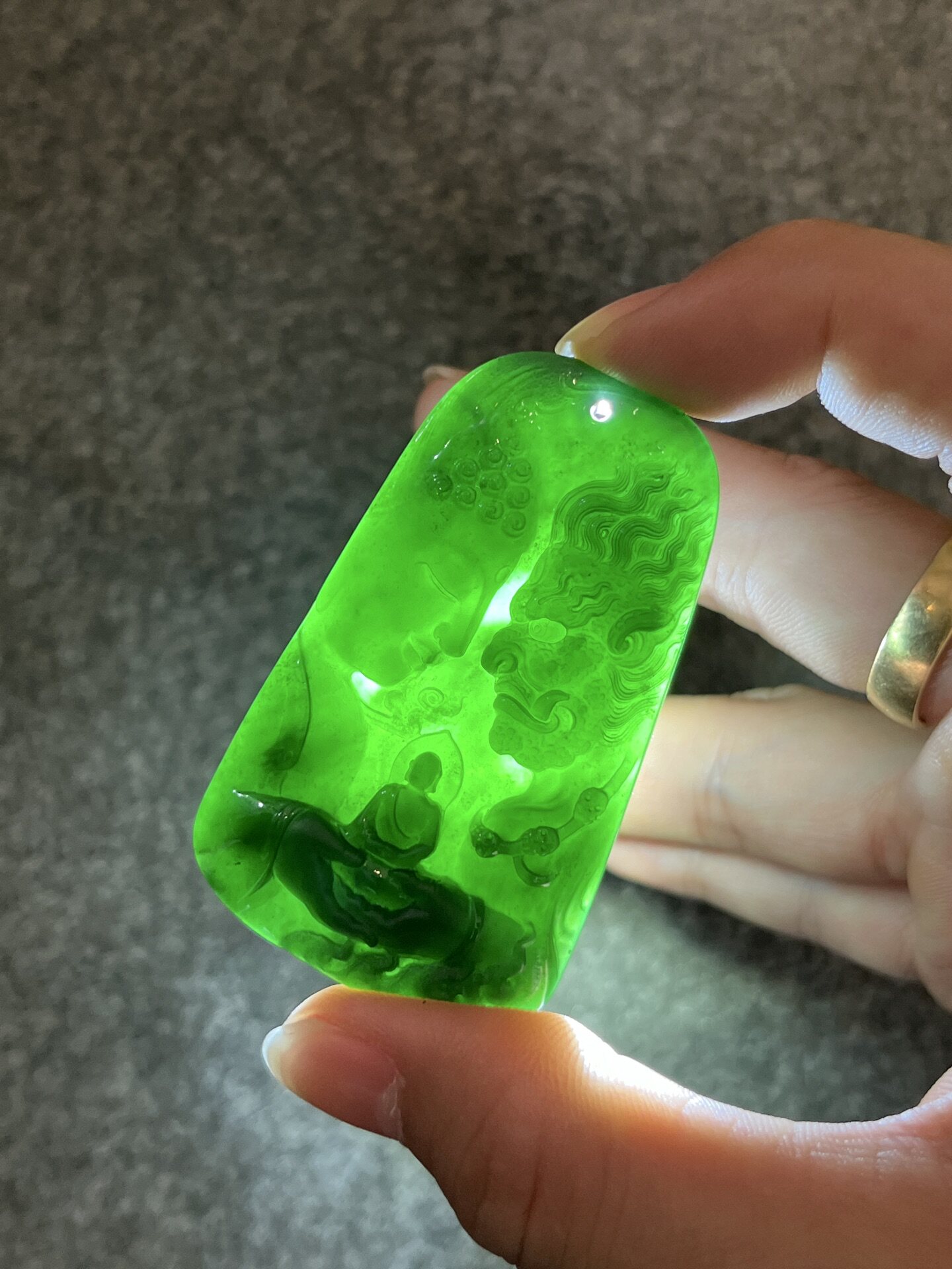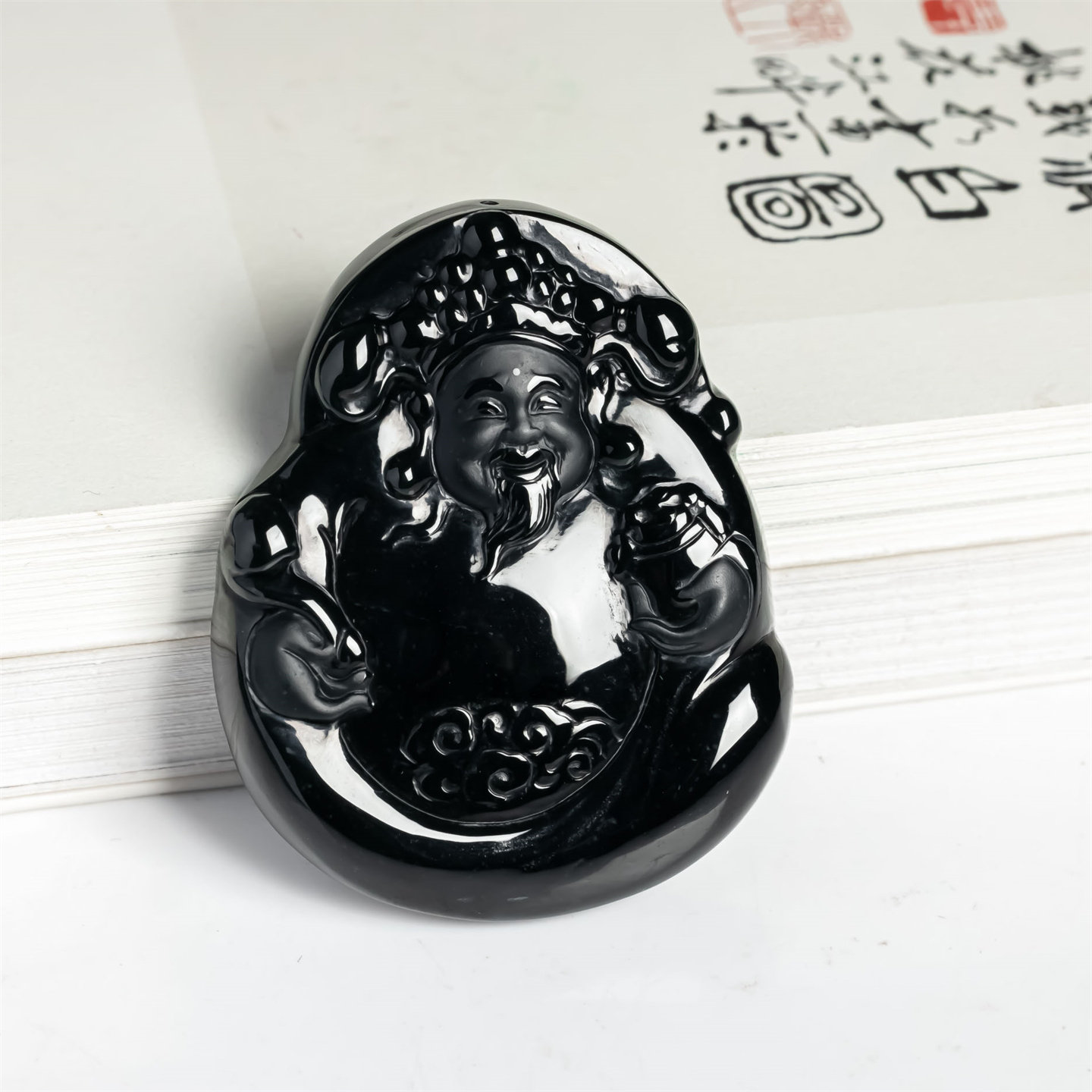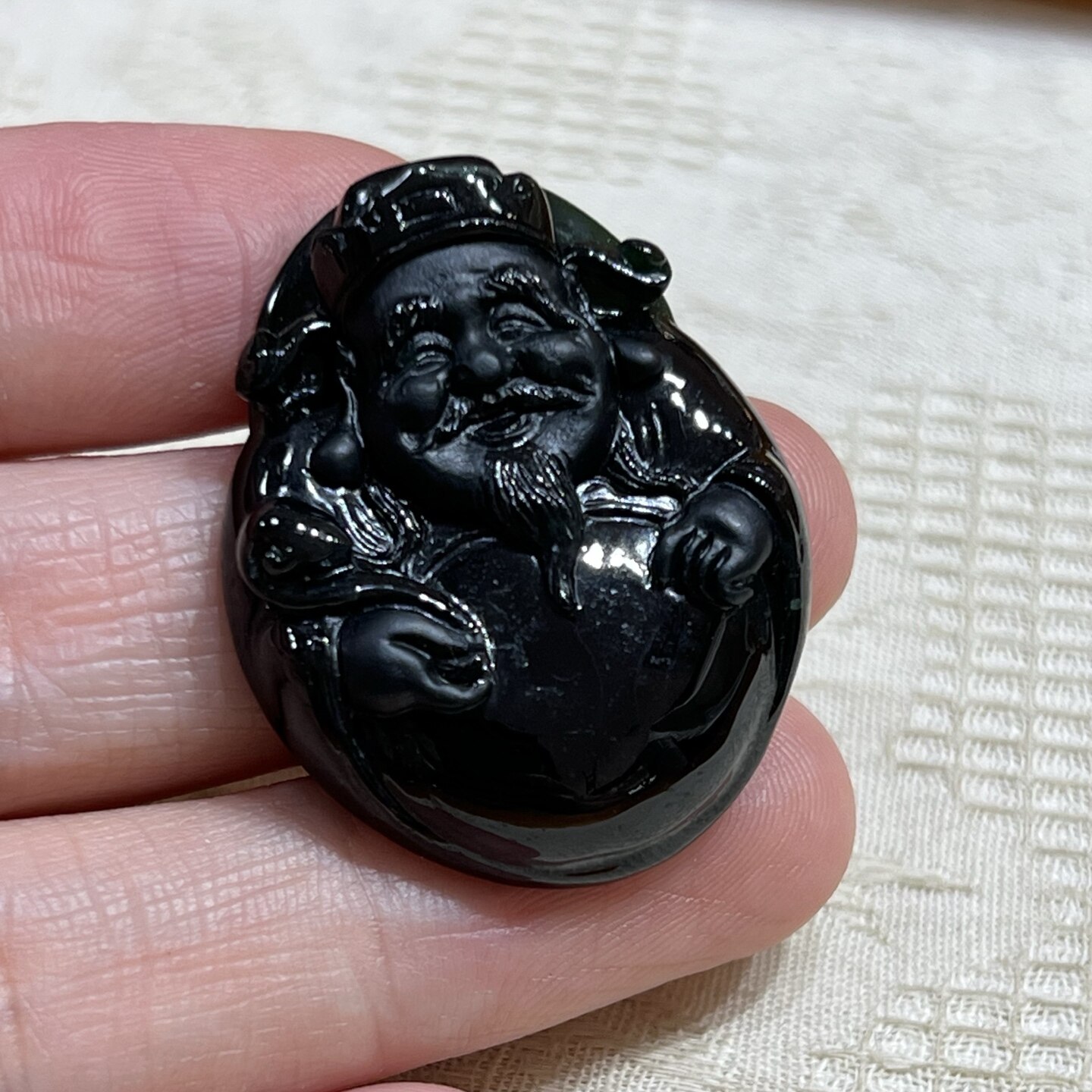天然翡翠a货冰糯种墨翠财神如意吊坠男女款老坑打灯透绿财神挂件