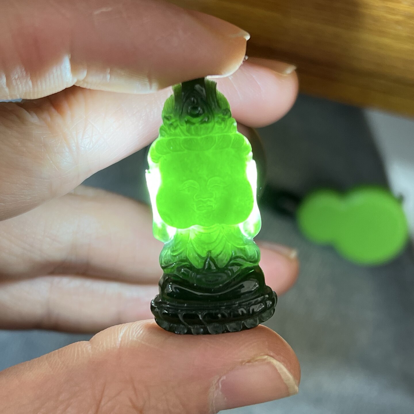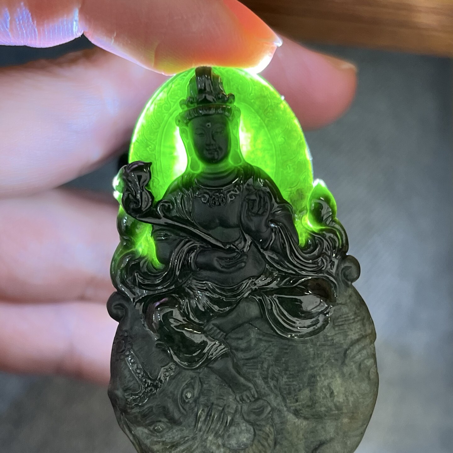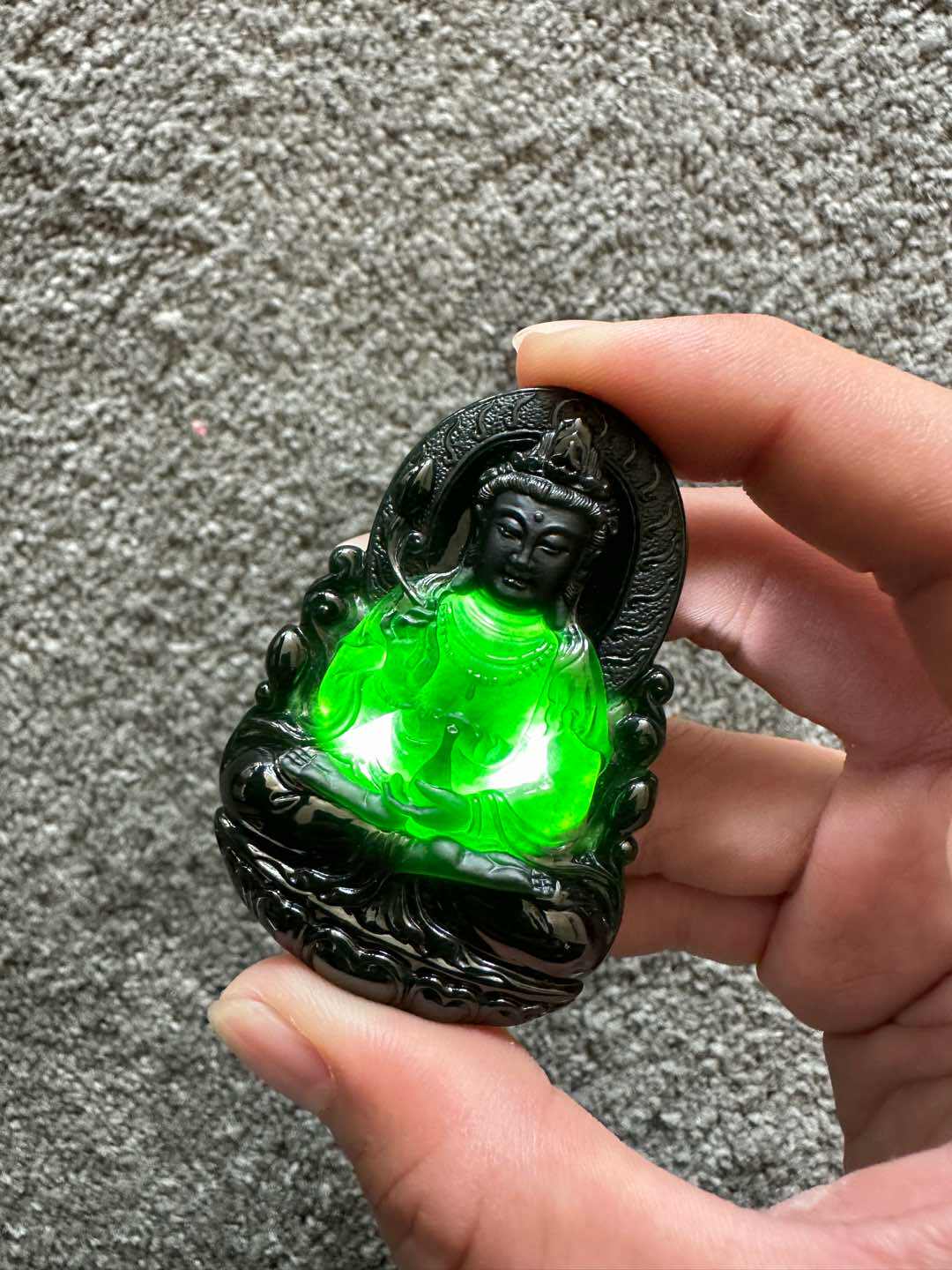 正品天然a货墨翠本命佛墨玉翡翠生肖八大守护神冰种玉石观音吊坠