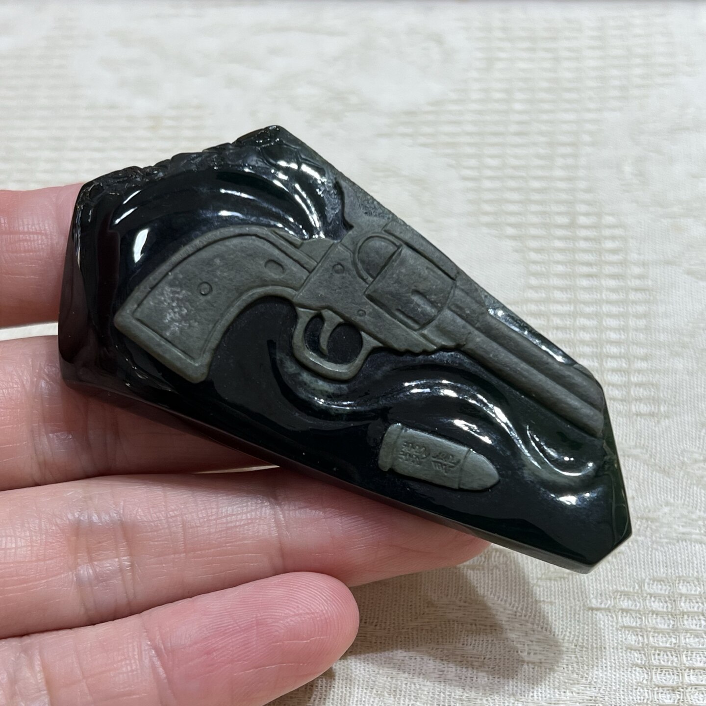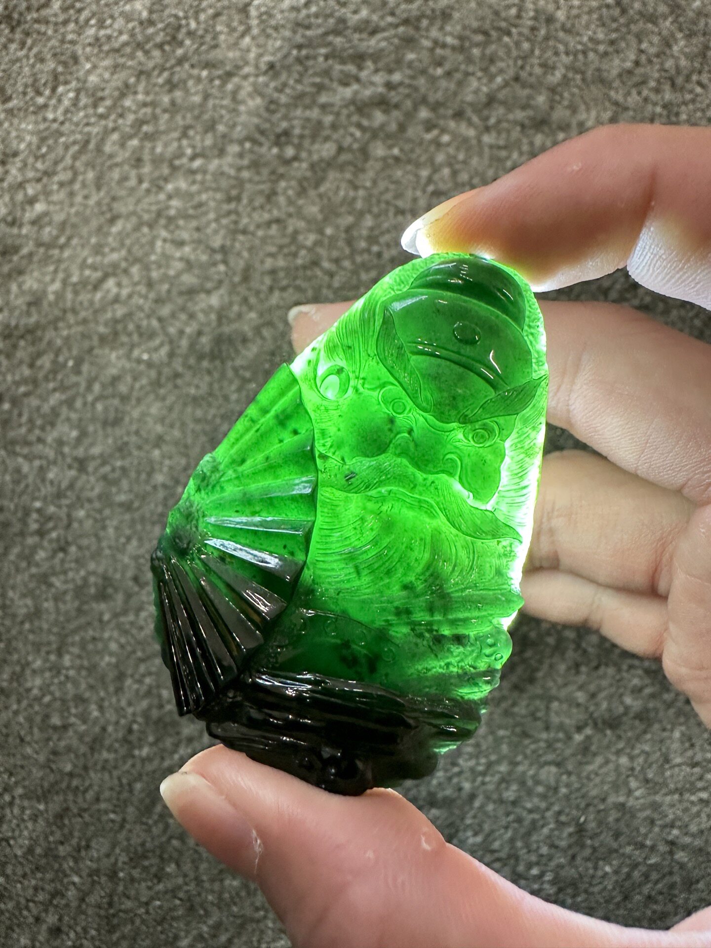 翠莹福天然墨翠A货翡翠墨玉年年有余吊坠玉石挂件通财男女款C243