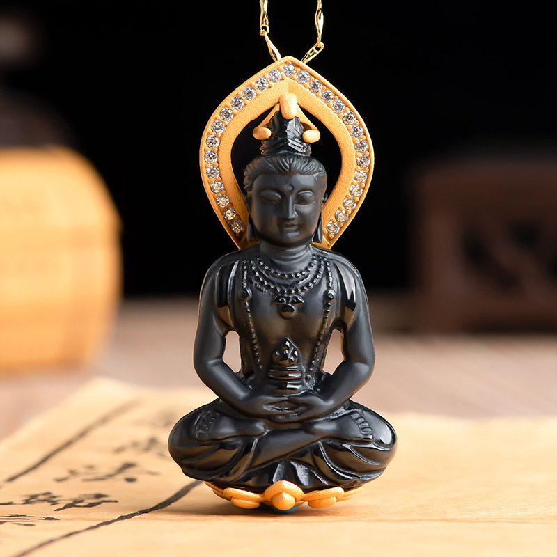 保真天然A货翡翠墨玉本命佛玉石观音吊坠墨翠生肖守护神护身平安