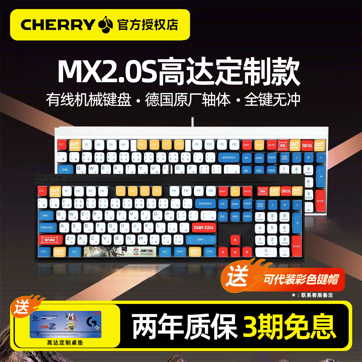 CHERRY樱桃MX2.0S高达款有线机械键盘 无线蓝牙三模电竞游戏109键
