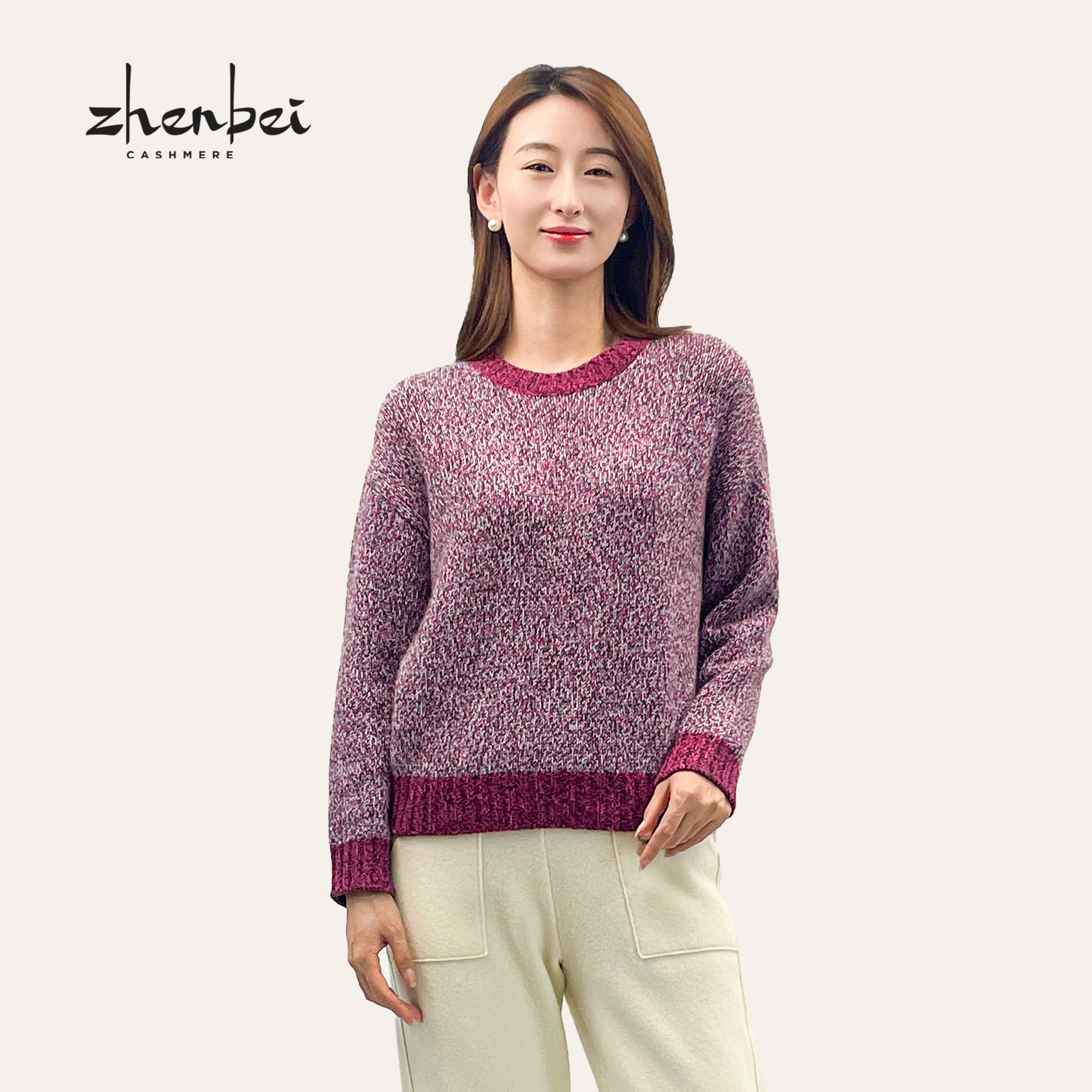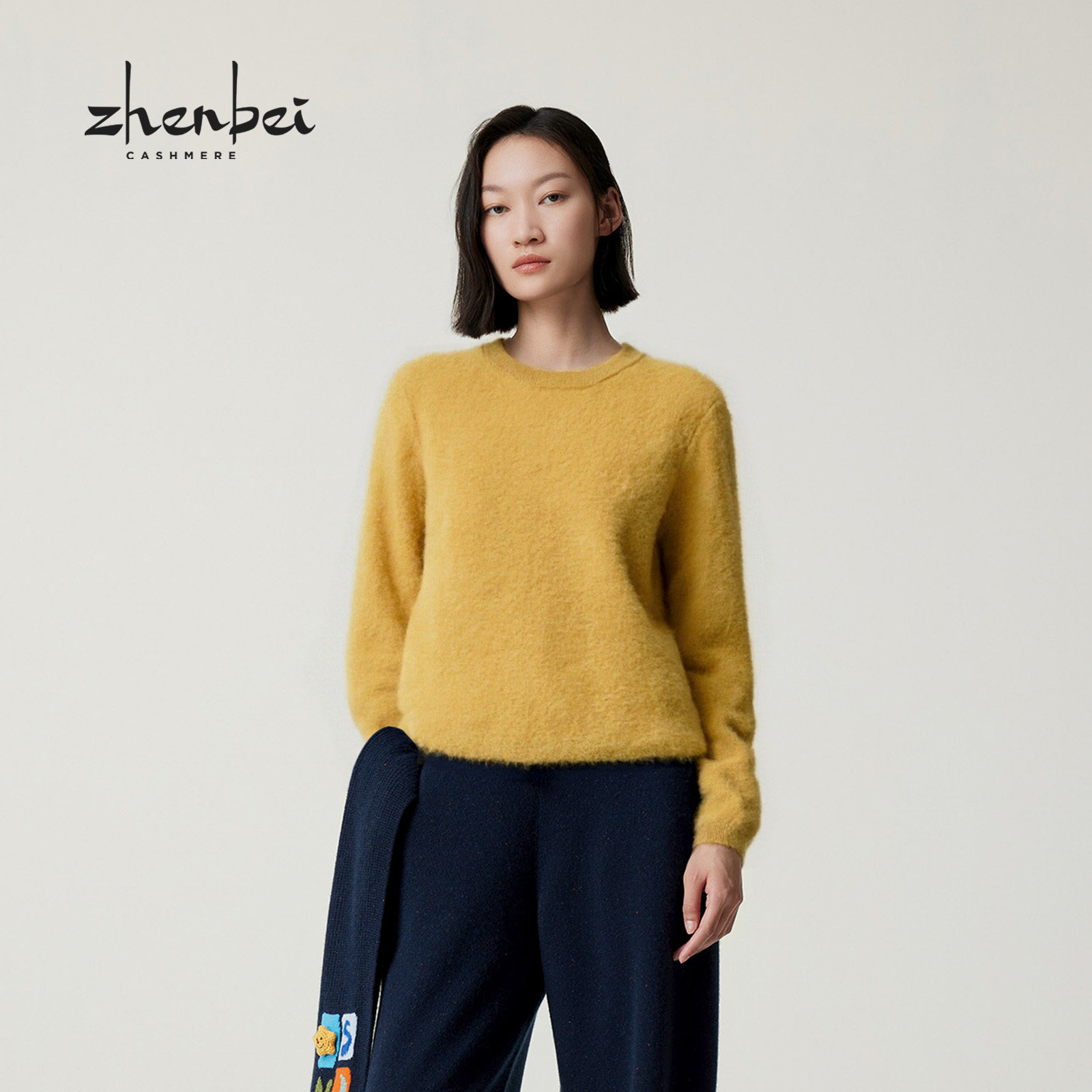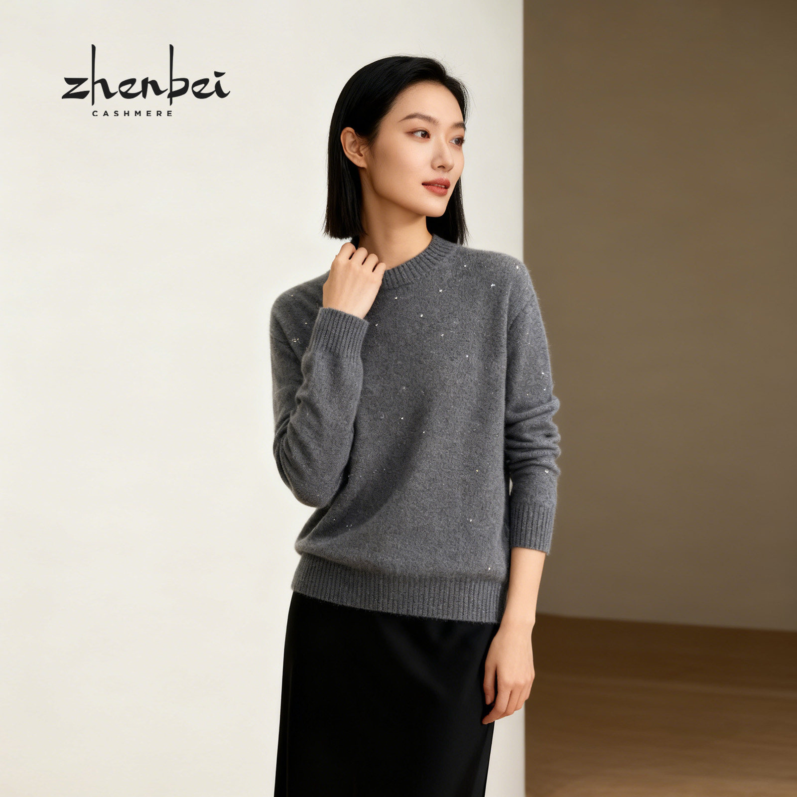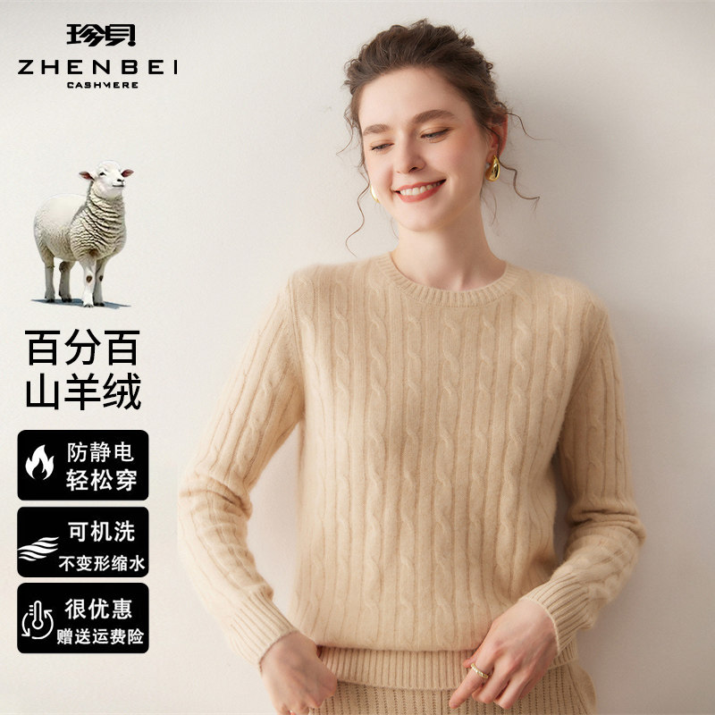 - 圆领羊绒衫女