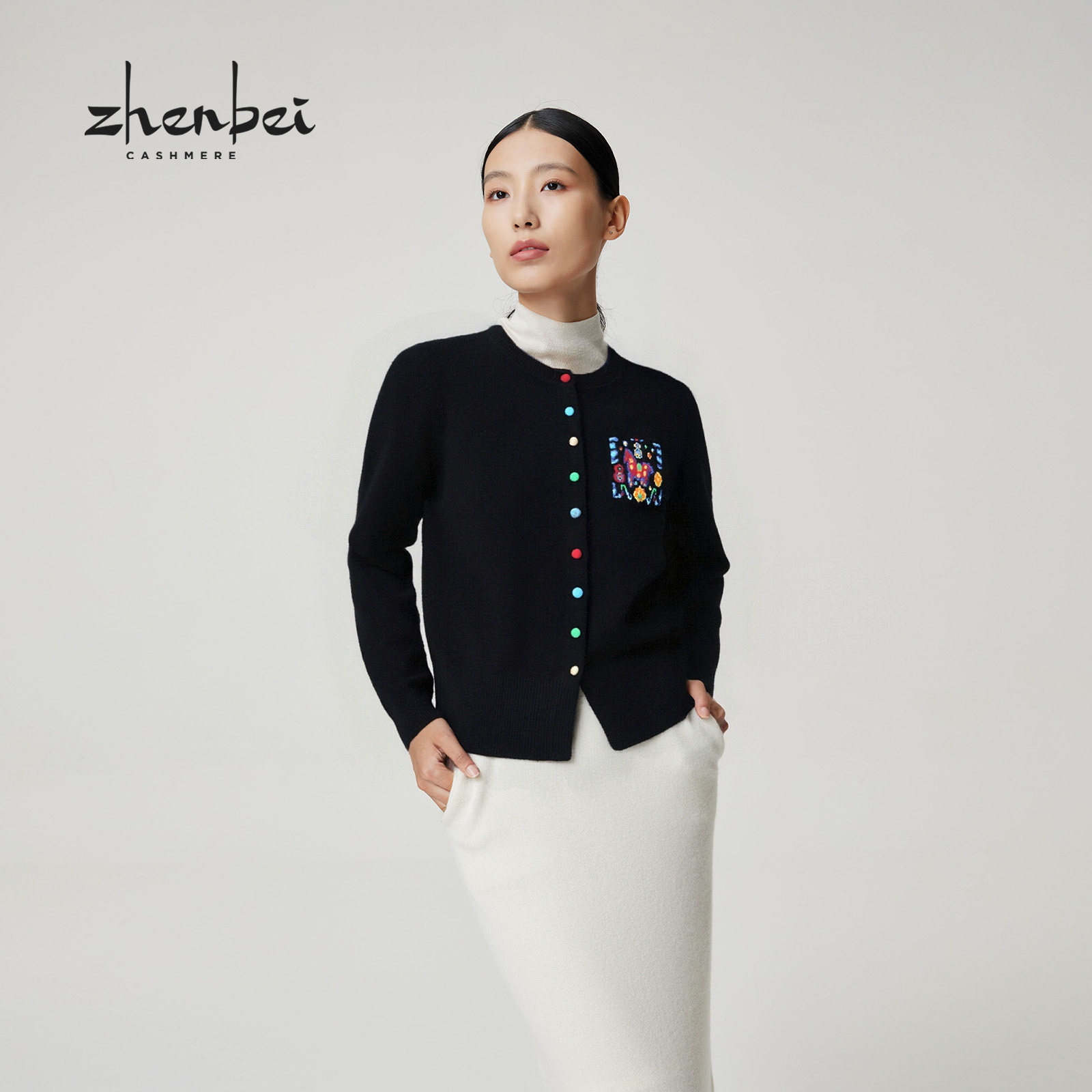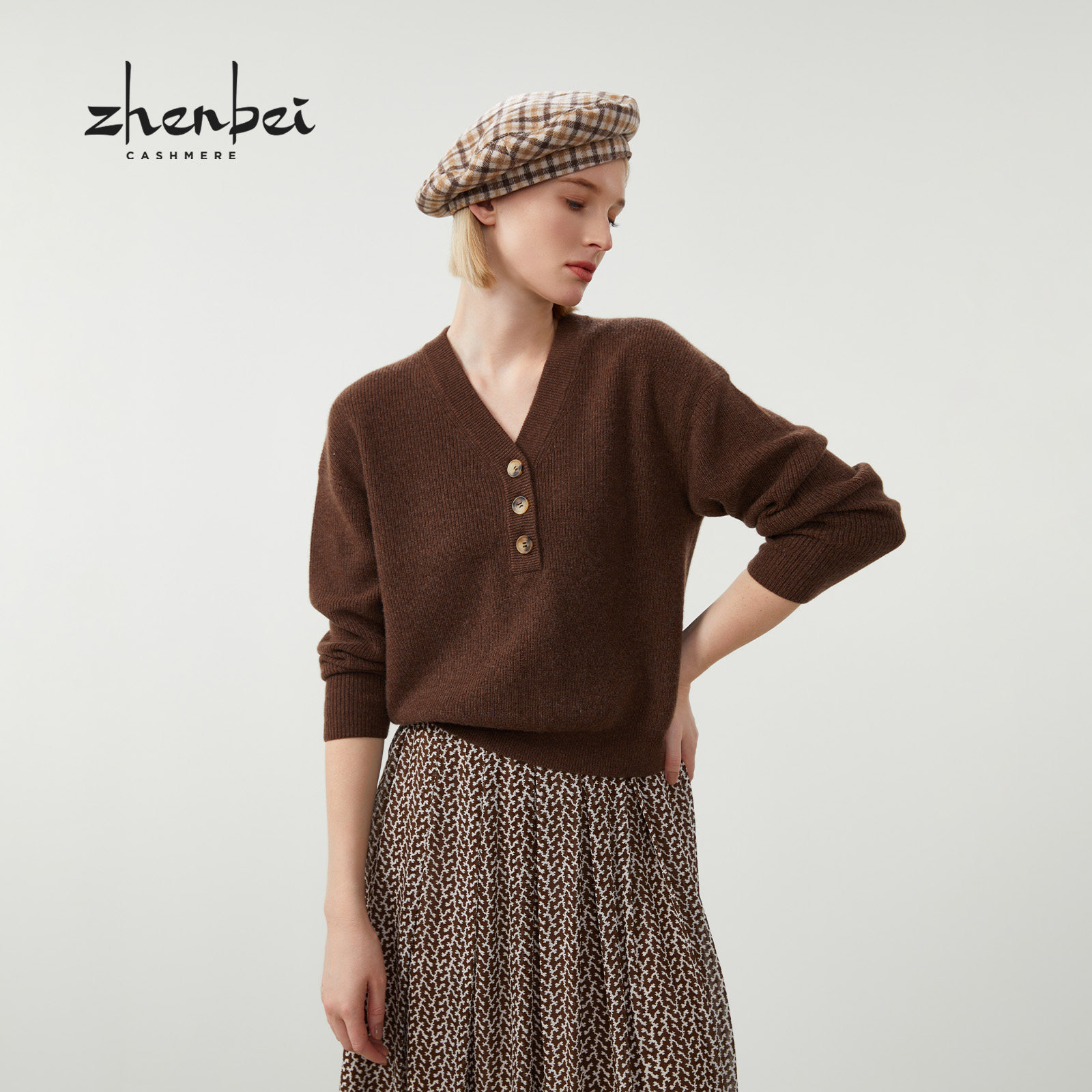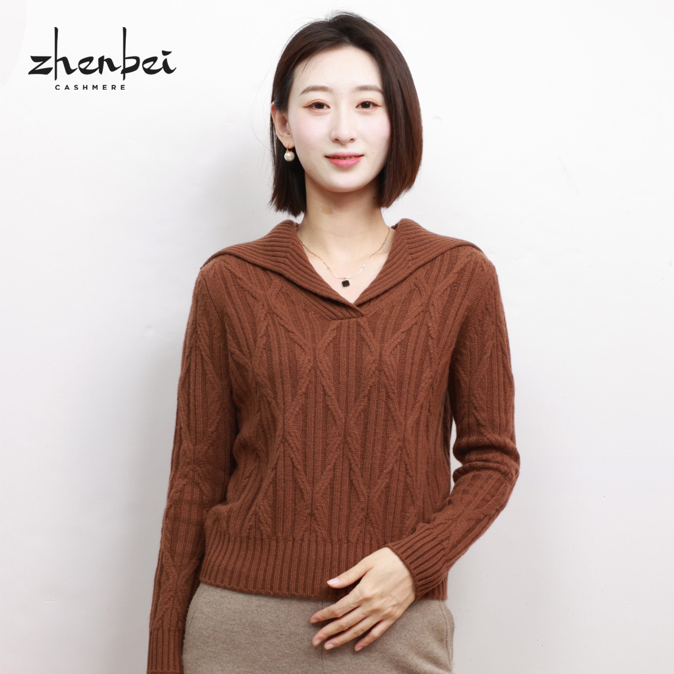 - 圆领羊绒衫女