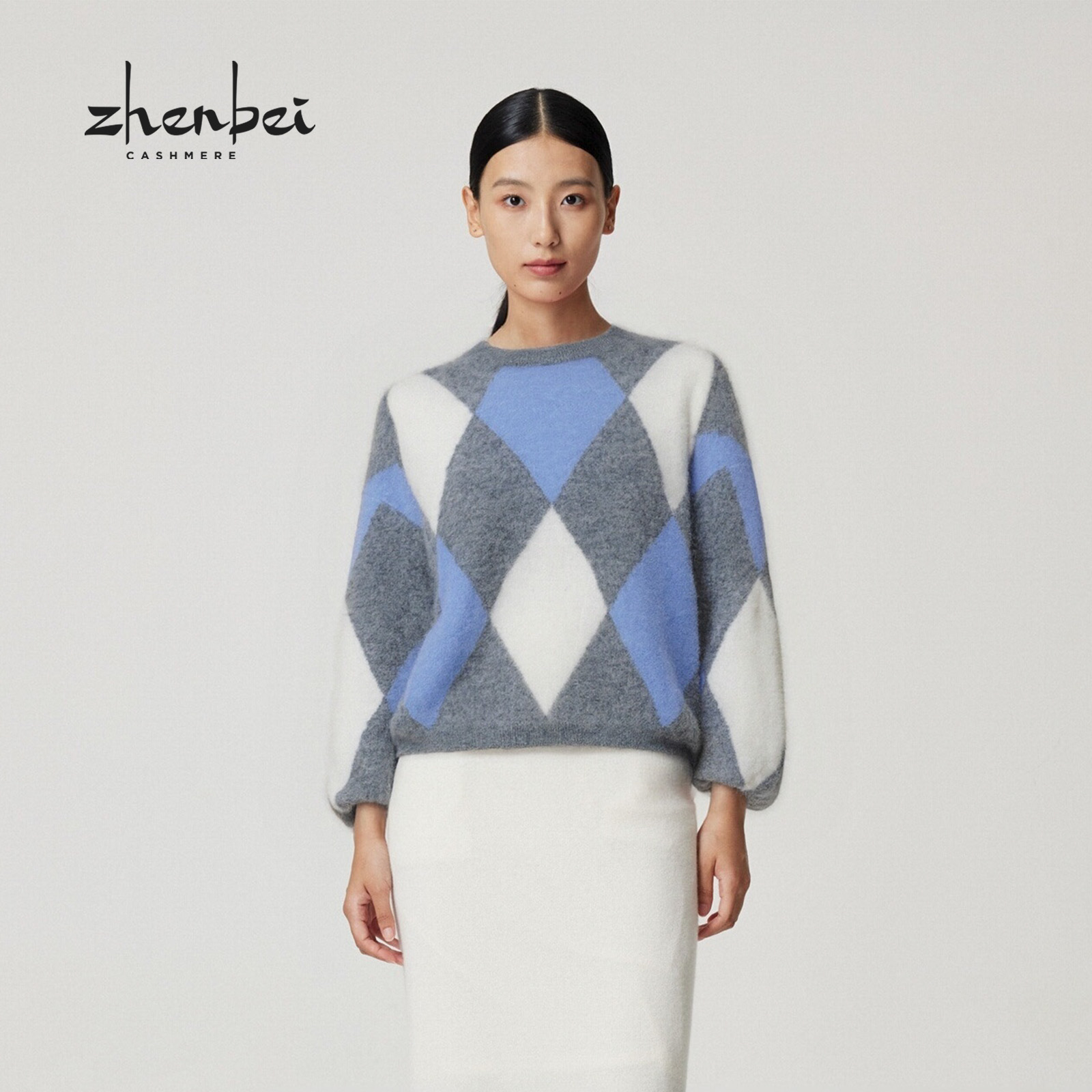 ZB/珍贝2025年秋冬新品绒绒圆领菱格女衫针织衫显瘦百搭/56189Q