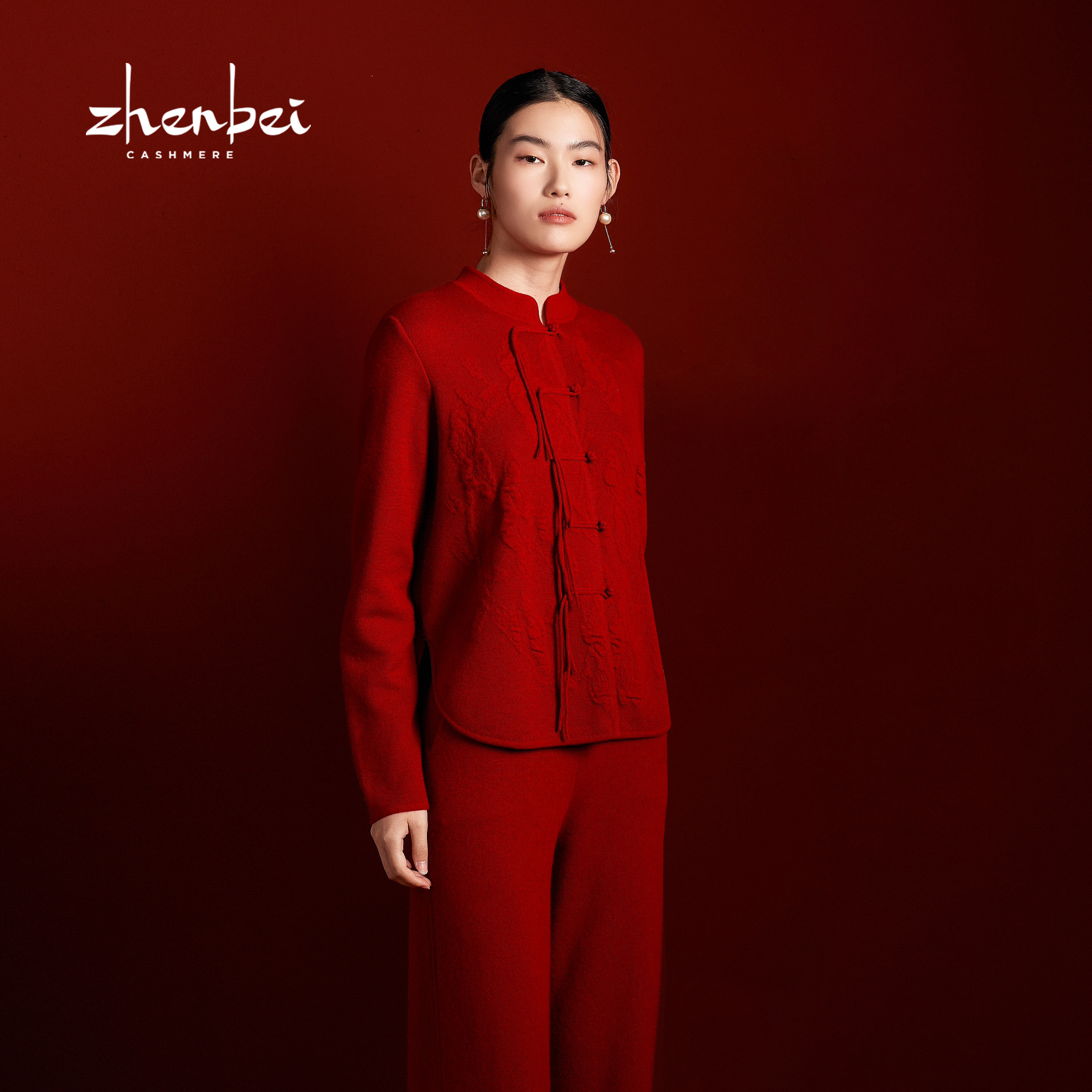 ZB/珍贝秋冬新品羊绒新中式红女开衫国风外套婚礼宴复古纯/h91031