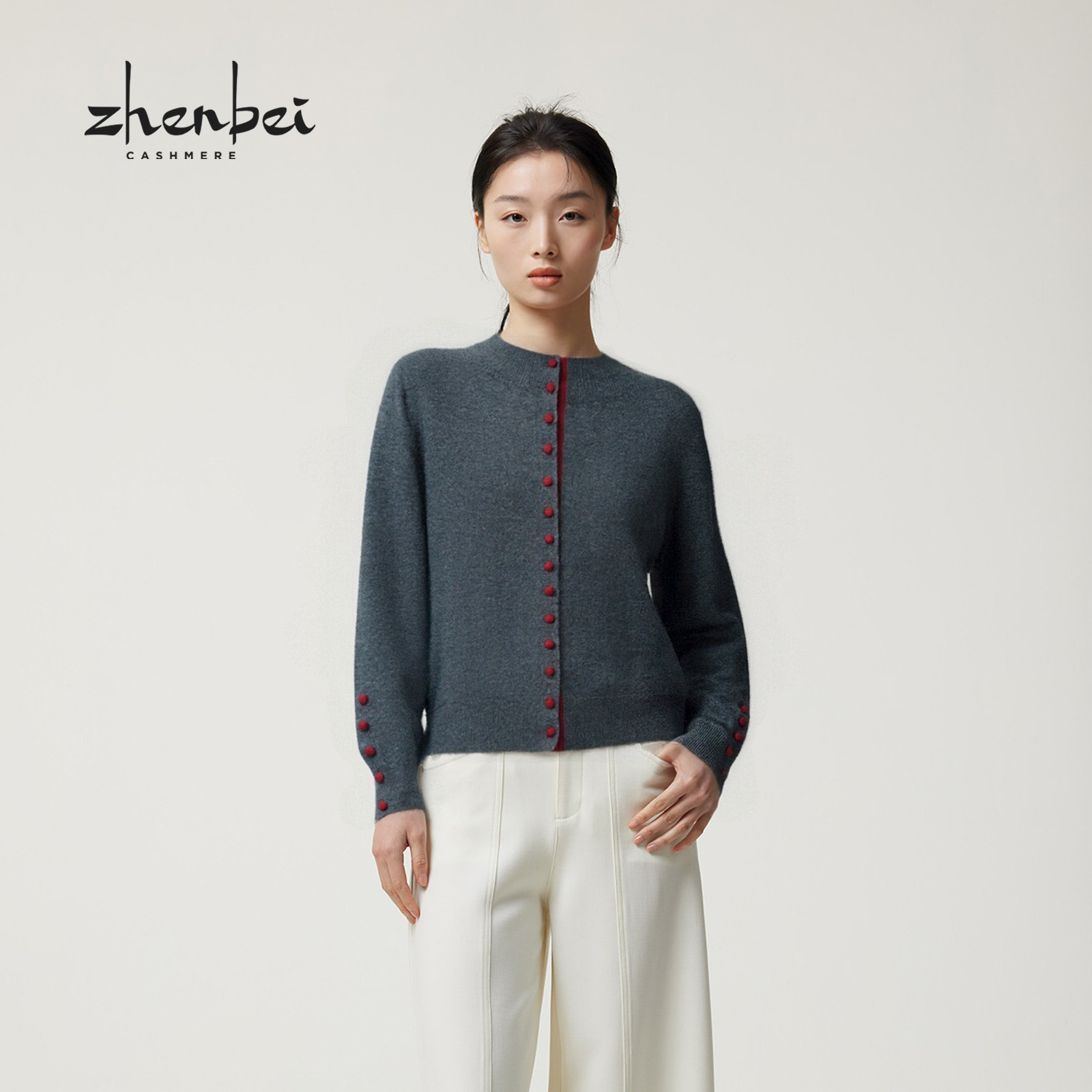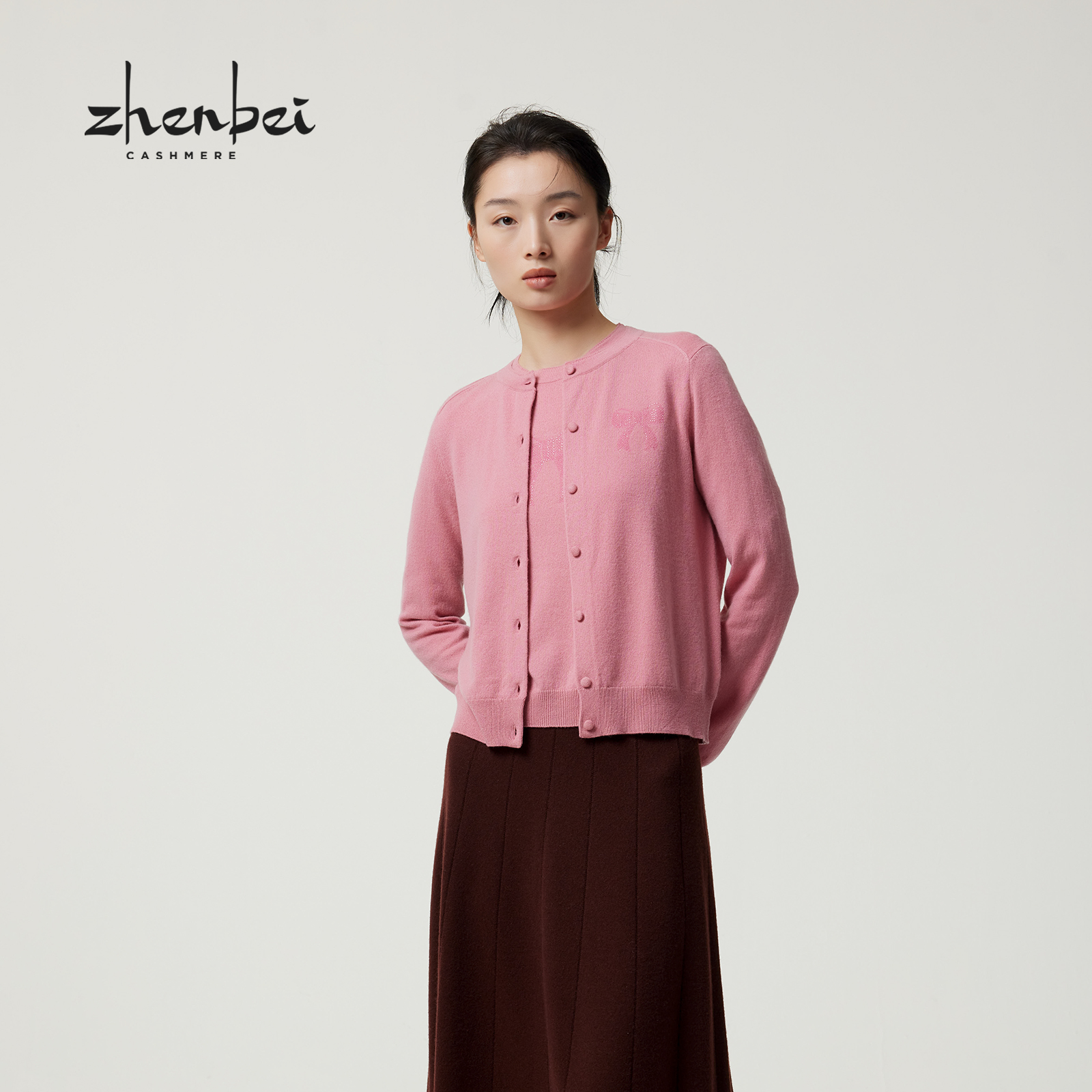 ZB/珍贝2025秋冬新品100%山羊绒时尚百搭 圆领女开衫时尚搭/56459