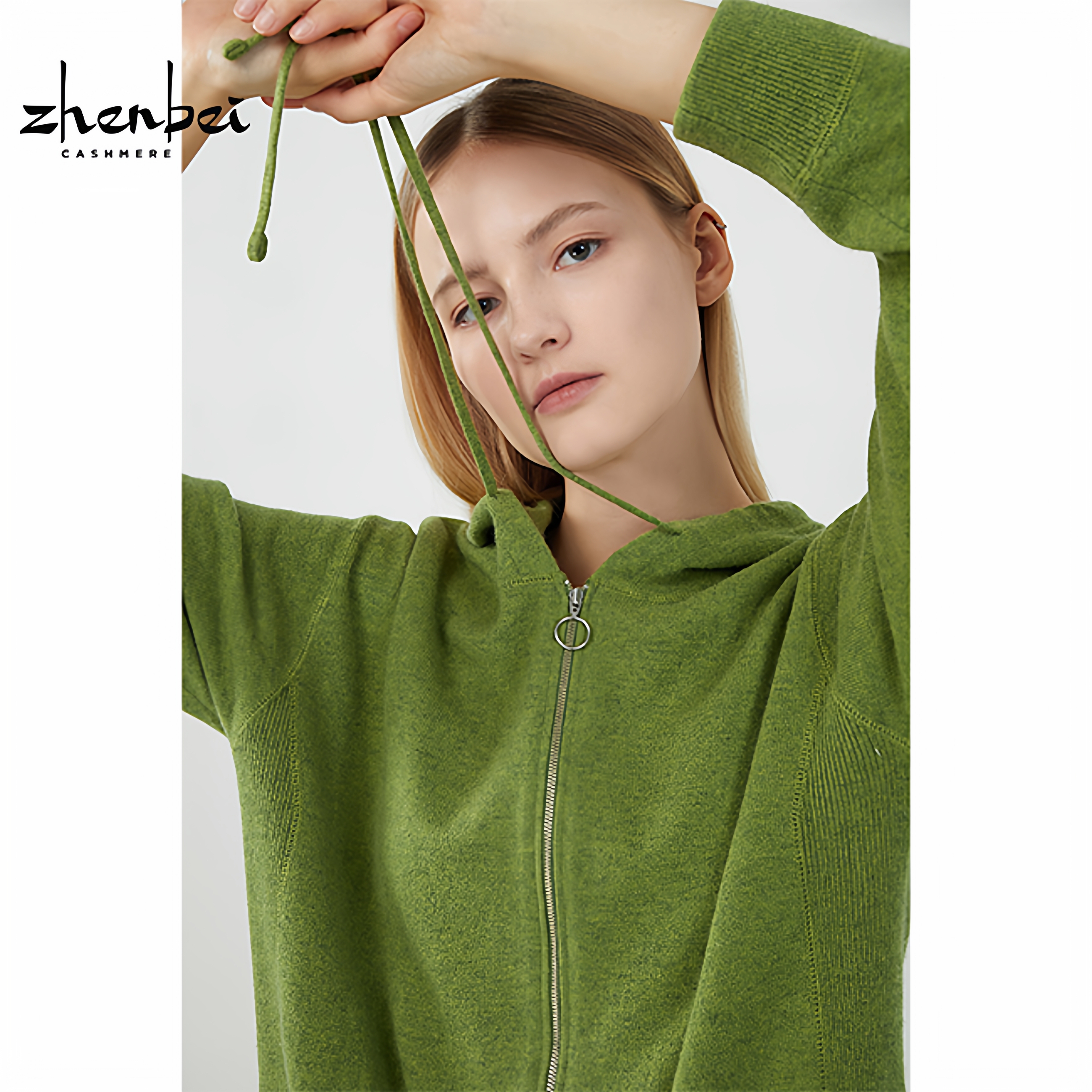 ZB/珍贝2023新款100%山羊绒带帽拉链女开衫时尚百搭拉链正/h81052