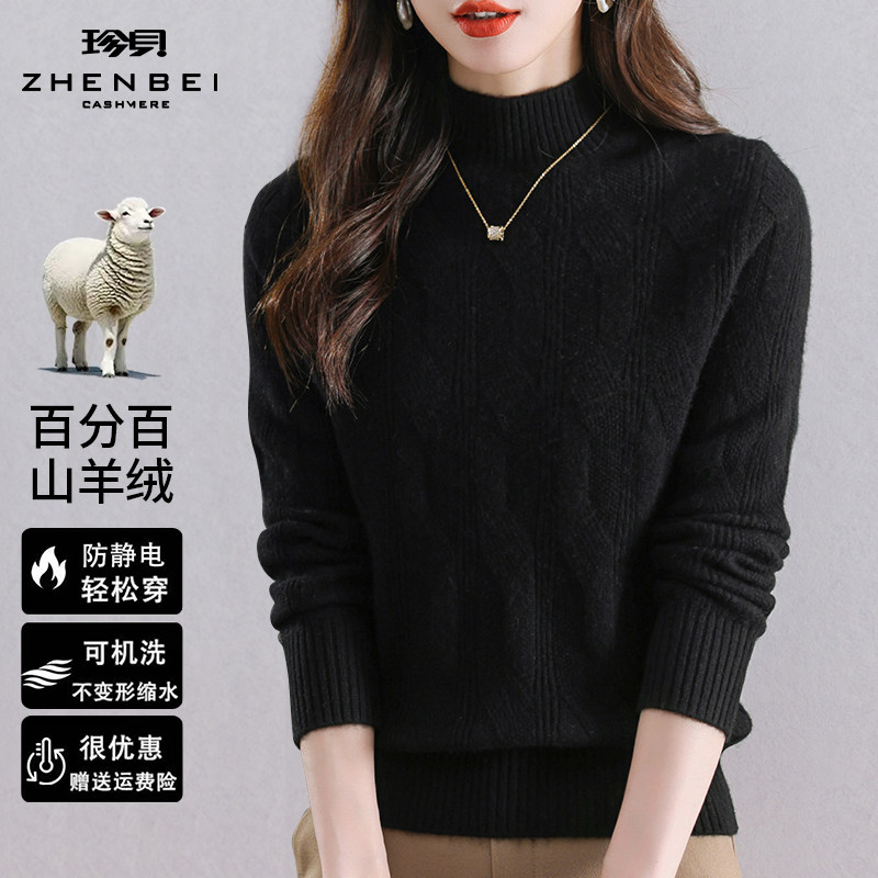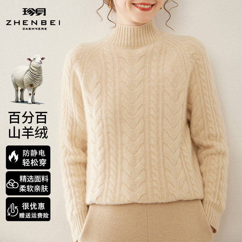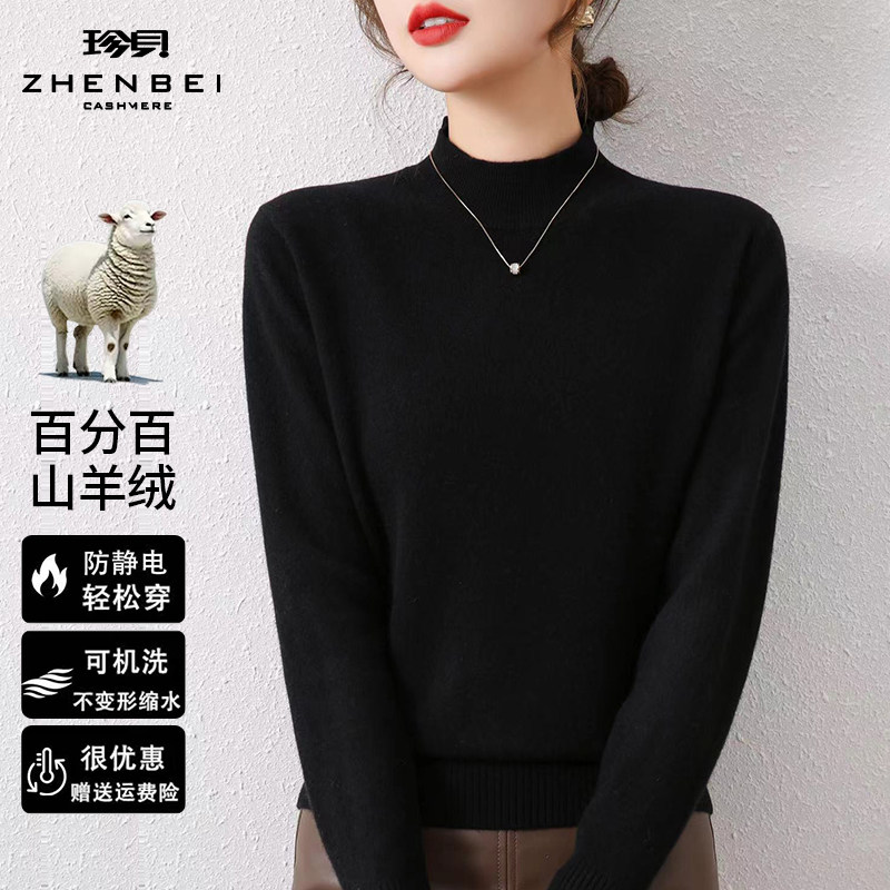 - 新款高领羊绒衫女