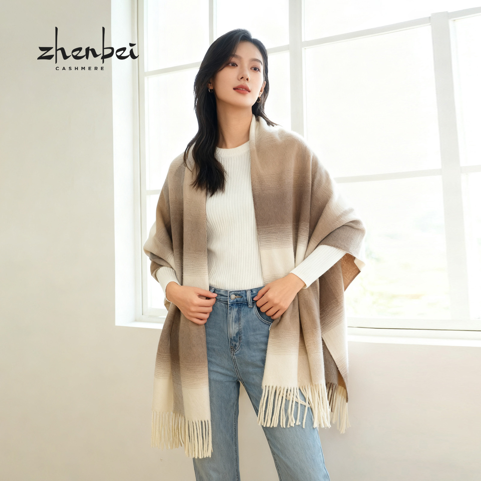 ZB/珍贝2025年新款品100%山羊绒披肩时尚百搭优雅复古旗舰/W11010