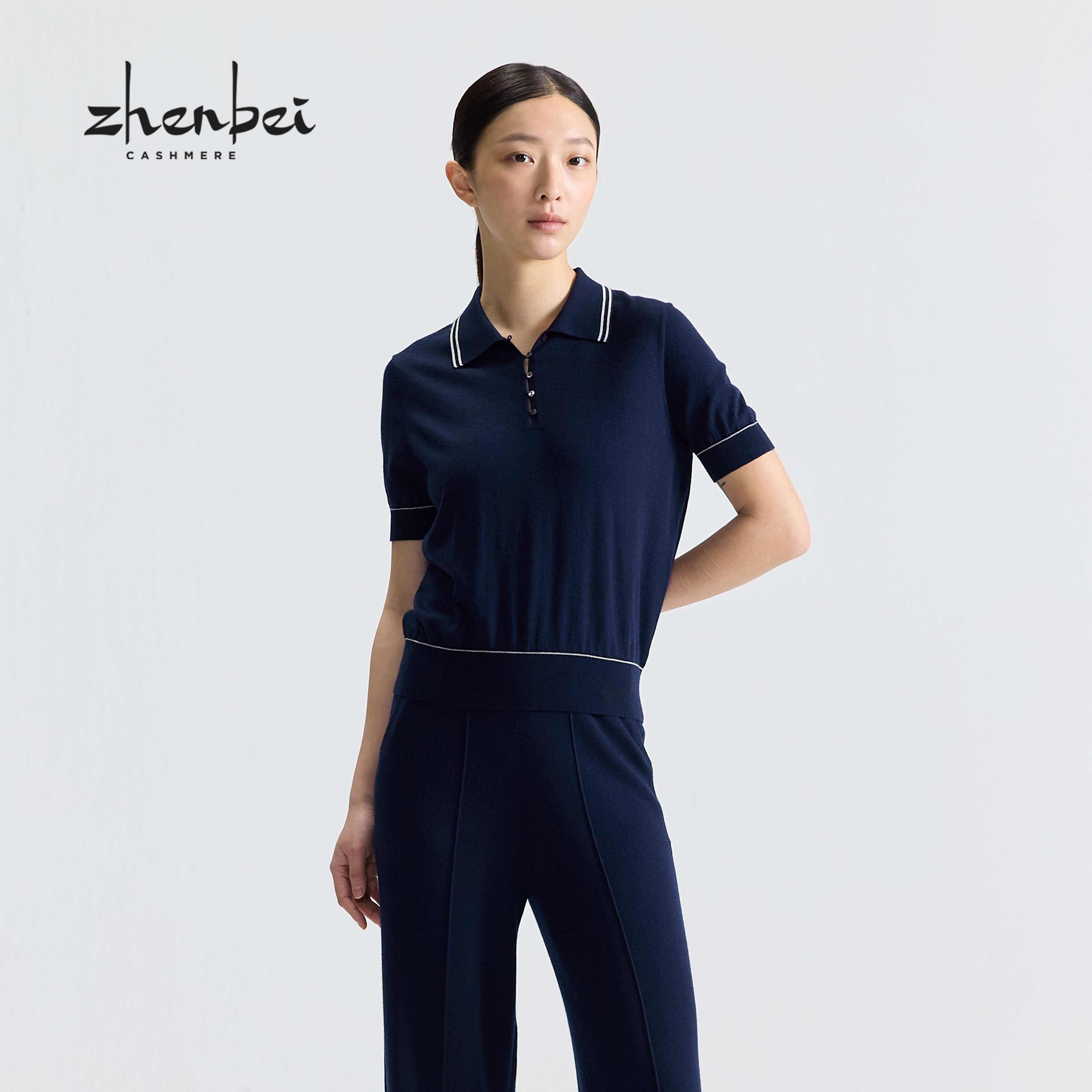 ZB/珍贝2025年春季休闲气质丝绒夹色Polo领女短袖女装气质百66991