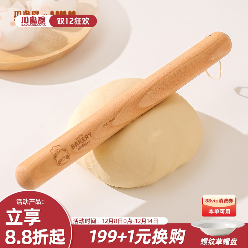 川岛屋&lulu猪联名 擀面杖家用三件套实木擀面棍烘焙擀饺子皮神器