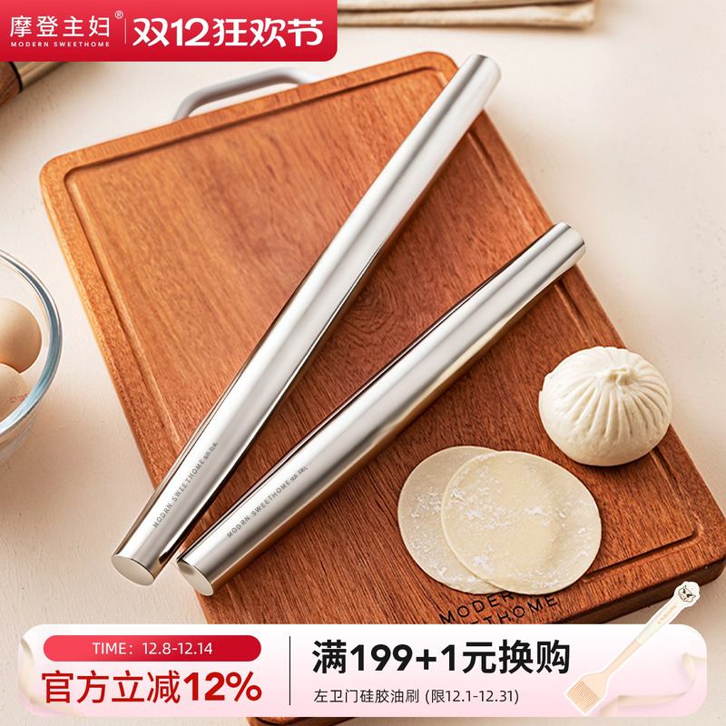 摩登主妇316L不锈钢擀面杖大号擀饺子皮神器家用烘焙工具擀面棍棒