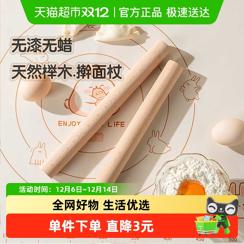 卡罗特擀面杖家用实木擀面条饺子皮擀面棍烘焙案板套装烘焙工具长