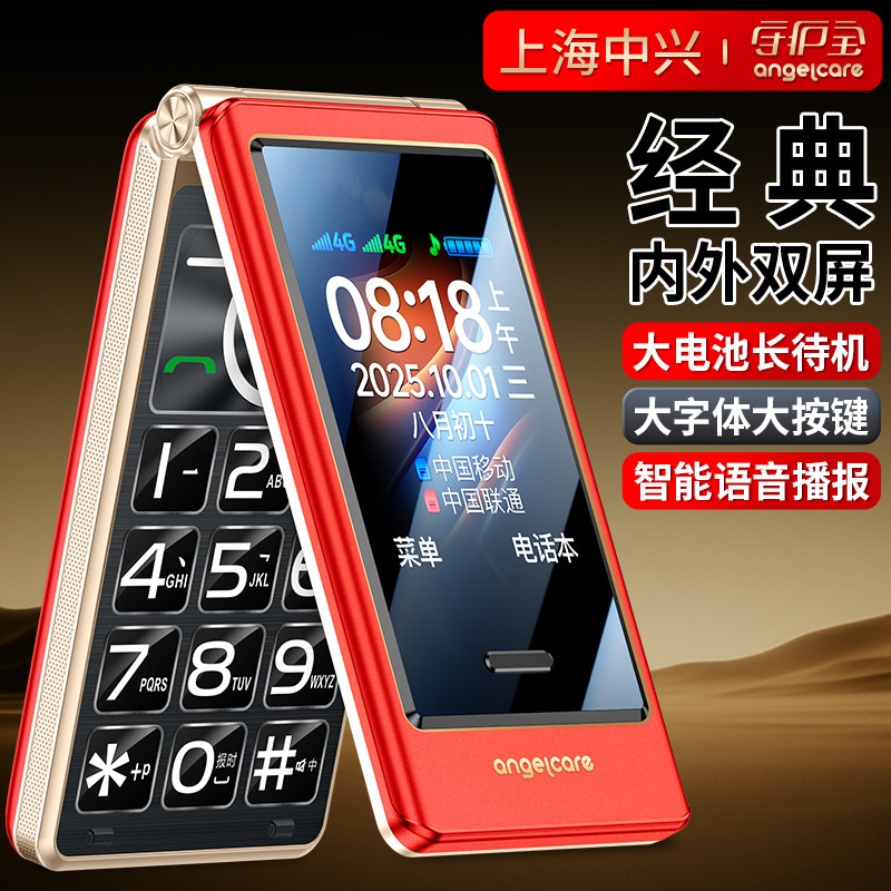 中兴守护宝K19翻盖全网通4G老人机GPS定位大声音大字体正品手机