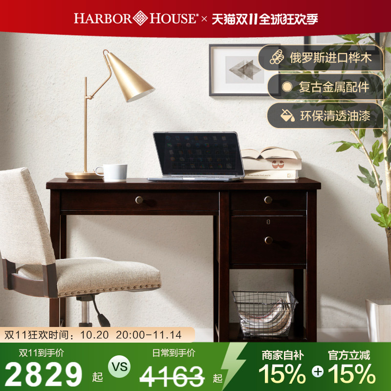 HarborHouse美式实木书桌办公桌现代简约书房家具家用写字书桌
