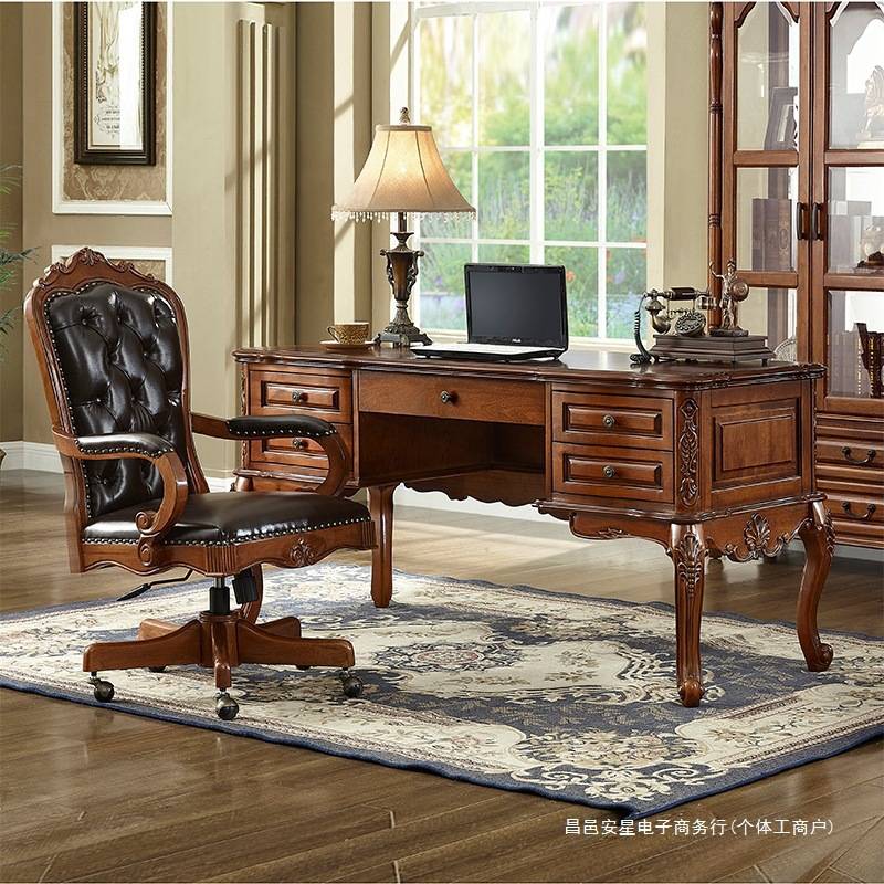 欧式实木书桌椅美式组合小写字台办公桌电脑桌子家用卧室书房家具