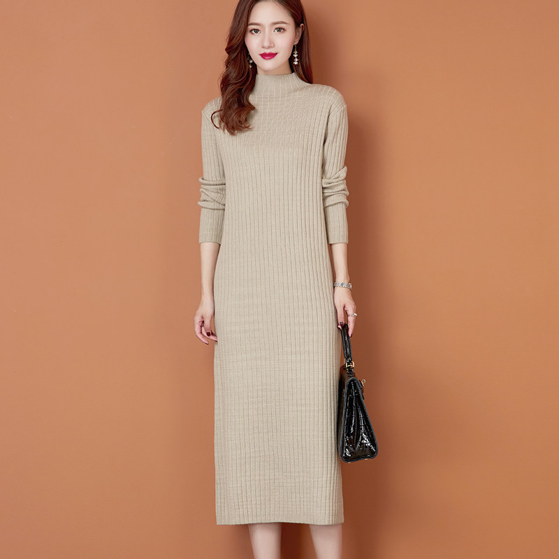 大牌2026春秋新款半高领中长款毛衣女羊毛针织连衣裙加厚打底衫