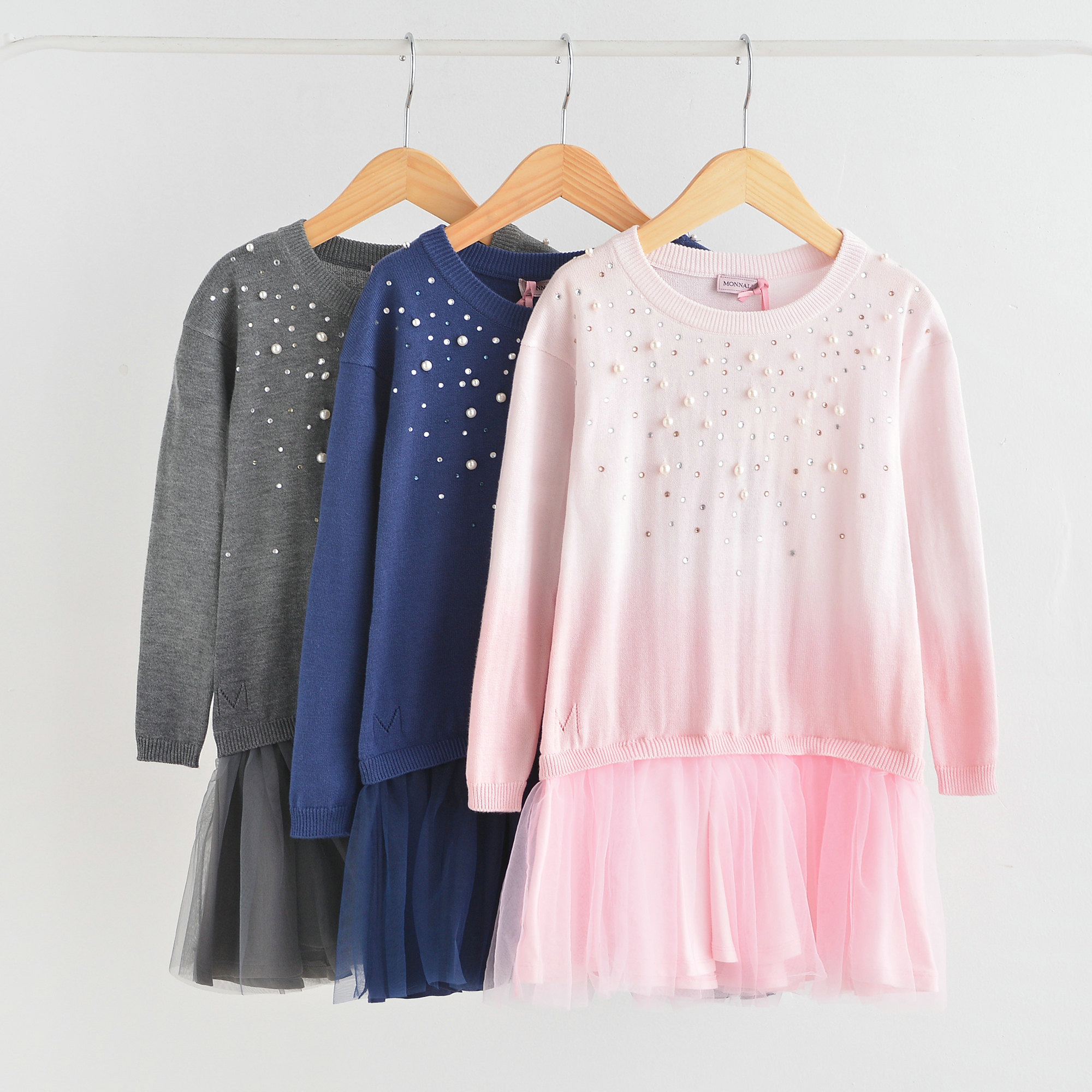 珍藏款大牌M家意大利秋冬洋气款女童珍珠饰渐变色针织长袖连衣裙