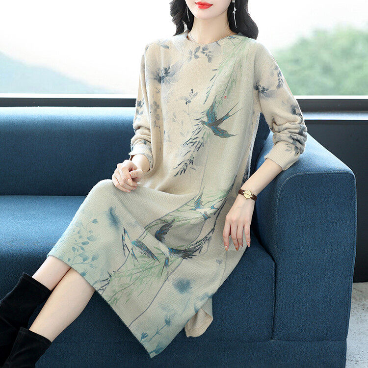 - 长款针织连衣裙冬