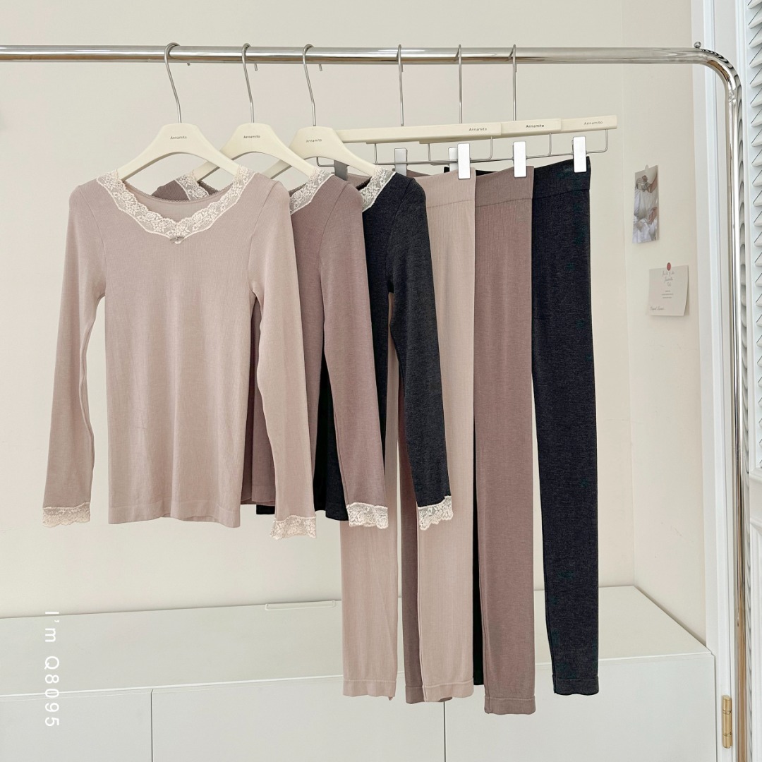 温柔优雅设计感撞色蕾丝花边发热女士秋衣裤套装2025秋冬新款