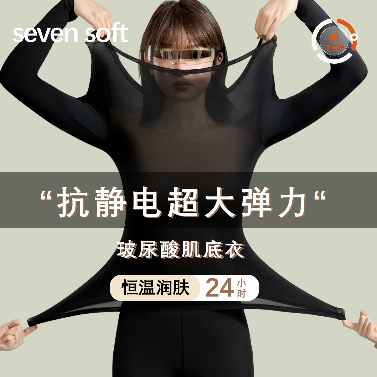 超薄美肤衣发热保暖内衣女士秋衣裤套装内穿热能面膜肌底衣打底衫