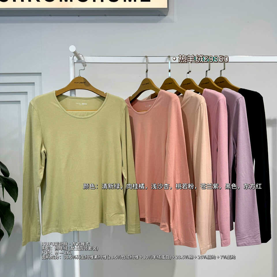 爱舒肤保暖内衣女A29350圆领中厚羊绒蛋白发热纤维女士秋衣裤套装