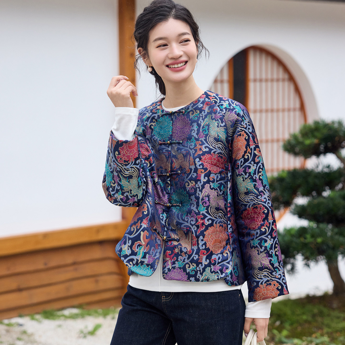 菲伊唐人丝宋锦棉衣女上衣冬中式文艺复古改良唐装女夹棉服外套女