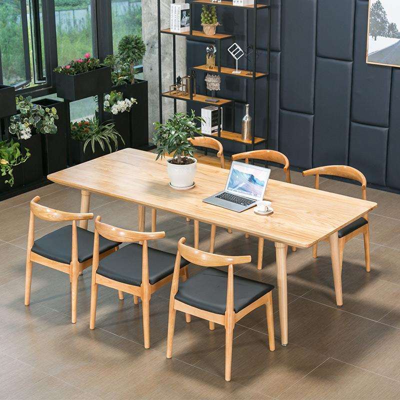北欧实木会议桌长桌简约现代图书馆书桌长方形办公桌洽谈桌椅组合